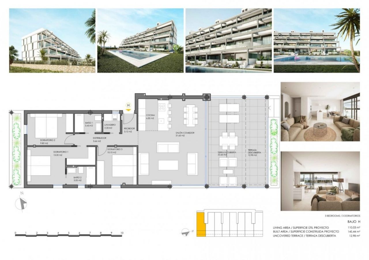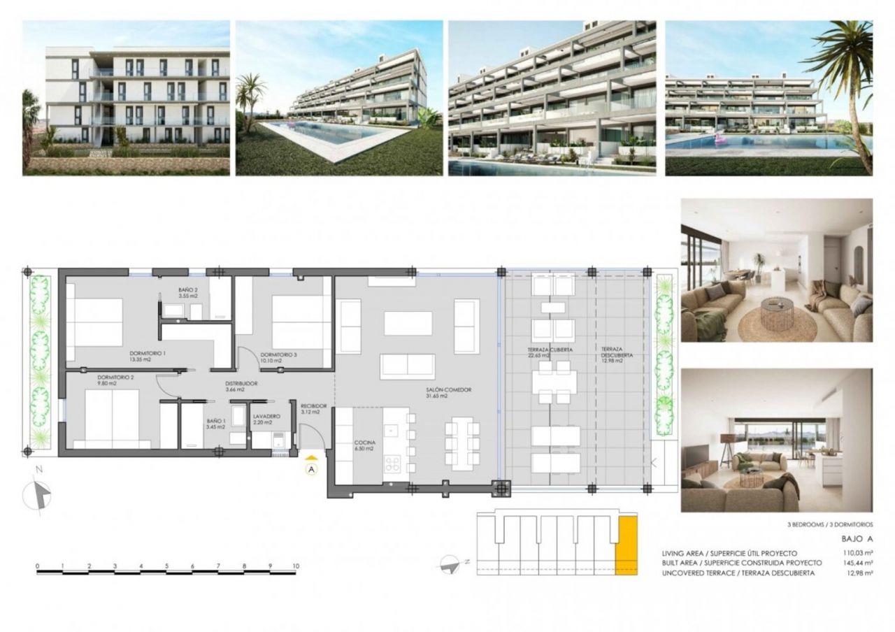 NOVÝ REZIDENČNÍ KOMPLEX V MAR DE CRISTAL Nový moderní rezidenční komplex apartmánů a penthousů nacházející se v těsné blízkosti promenády a dlouhých krásných písečných pláží Mar de Cristal. Můžete si vybrat z přízemních apartmánů s vlastní zahradou, apartmánů ve středním patře s terasou a penthousů s vlastním soláriem. Apartmány mají 2 nebo 3 ložnice a 2 koupelny. Byt má moderní design a nabízí otevřený obývací prostor spojující kuchyň, jídelnu a obývací část do velkého prostoru se vstupem na terasu. Hlavní ložnice má vlastní koupelnu. Postaveno s vysoce kvalitními povrchy, vestavěnými skříněmi, předinstalovanou klimatizací, komorou a podzemním parkováním. Veškeré předměty denní potřeby, jako jsou supermarkety, bary a restaurace, jsou dostupné po celý rok a nacházejí se v blízkosti komplexu. Mar de Cristal má krásné písečné pláže, tenisové centrum, přístav, supermarkety, bary a restaurace. Národní park Calblanque, kde najdete nedotčené dlouhé bílé písečné pláže, stejně jako slavný klub La Manga a živé město Los Belones, jsou 5 minut jízdy od vesnice. Letiště Murcia je vzdálené 25 minut jízdy a Alicante 1 hodinu jízdy. Navštívit můžete také historická města Cartagena a Murcia.