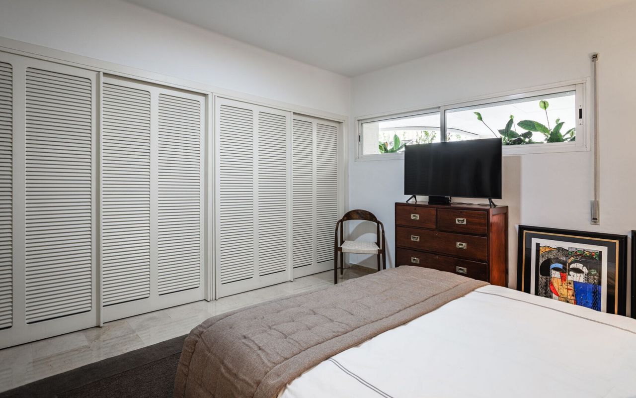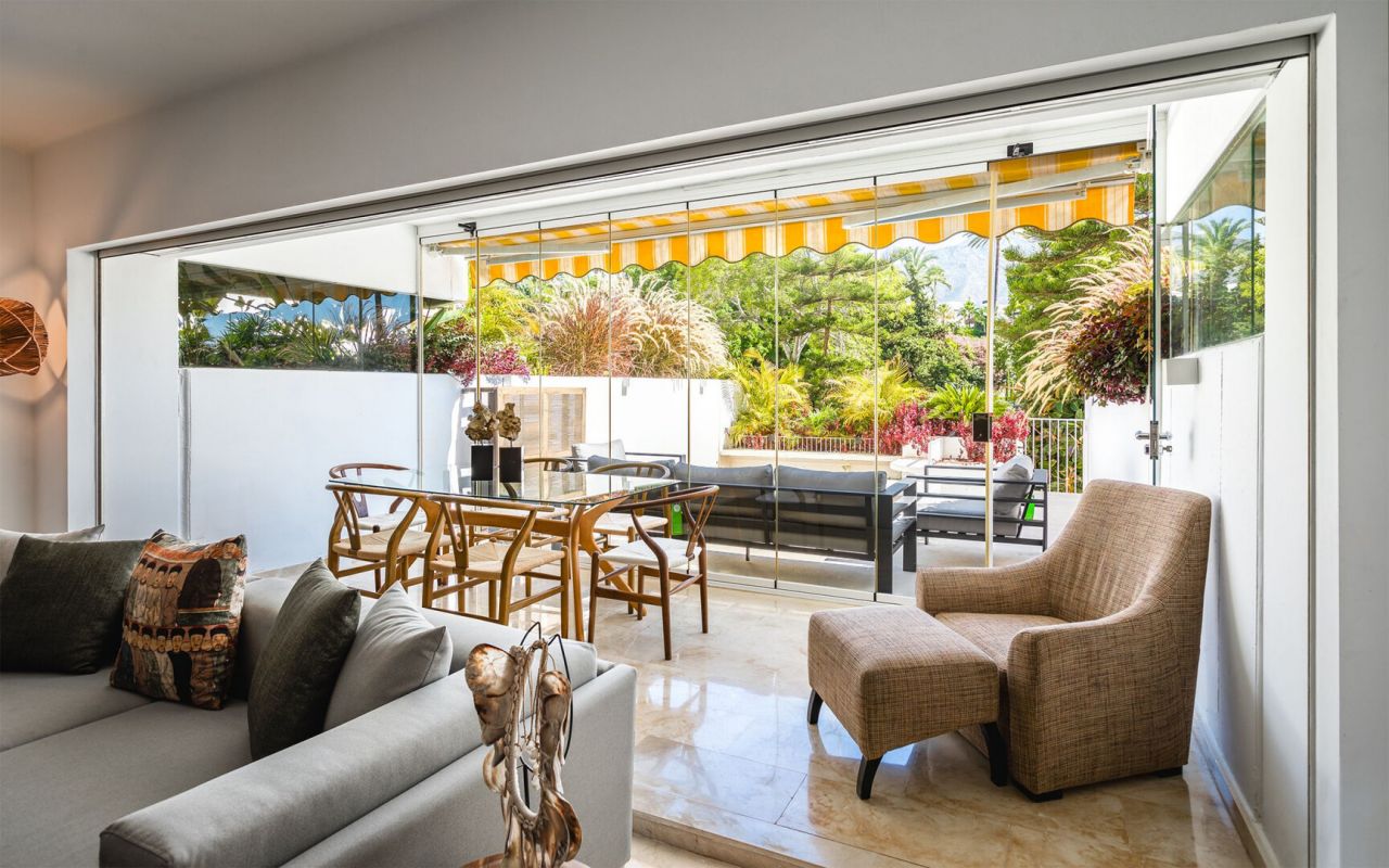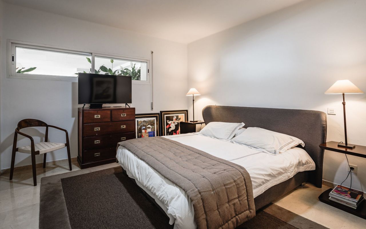 Tento zrekonstruovaný apartmán se nachází v přízemí a nachází se v uzavřeném komplexu s 24hodinovou ostrahou v klubu Las Lomas del Marbella, v centru prestižní Zlaté míle. Tento krásný byt je na jedné úrovni a byl kompletně a důkladně zrekonstruován. Byt se skládá ze vstupní haly, prostorného obývacího pokoje/jídelny se vstupem na velkou terasu, moderní otevřené kuchyně s kvalitními spotřebiči, hlavní ložnice s vestavěnými skříněmi, ložnice pro hosty rovněž s vestavěnými skříněmi a en-suite koupelny. Projekt má dobře udržované komunitní zahrady s bazénem a má výhodnou polohu ve velmi žádané oblasti přibližně na půli cesty mezi městem Marbella a Puerto Banus.