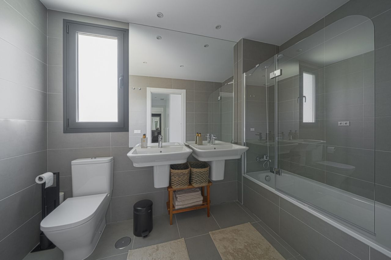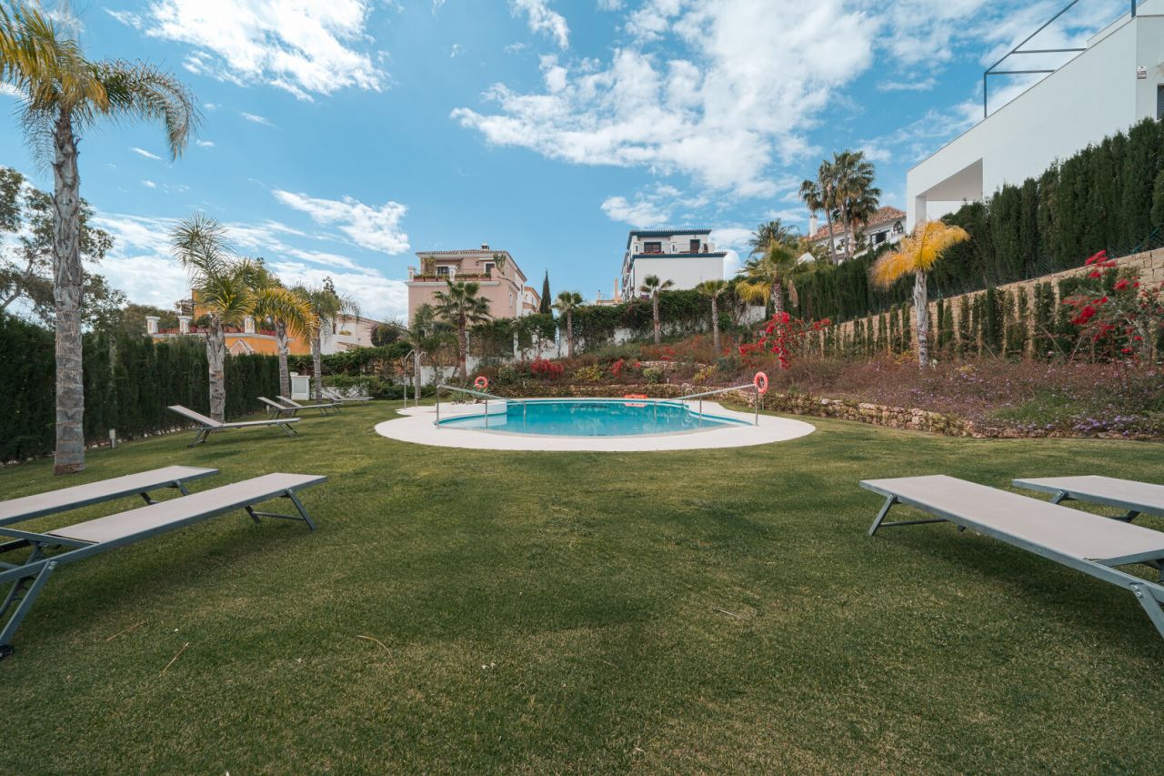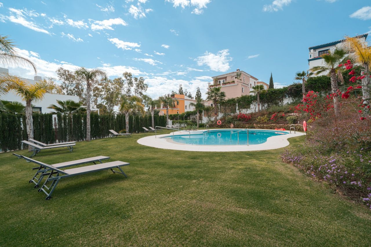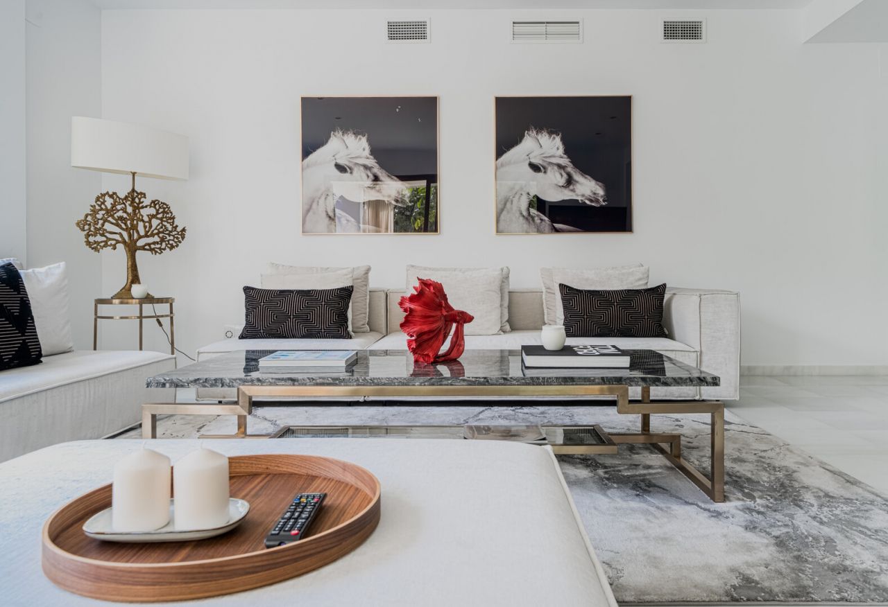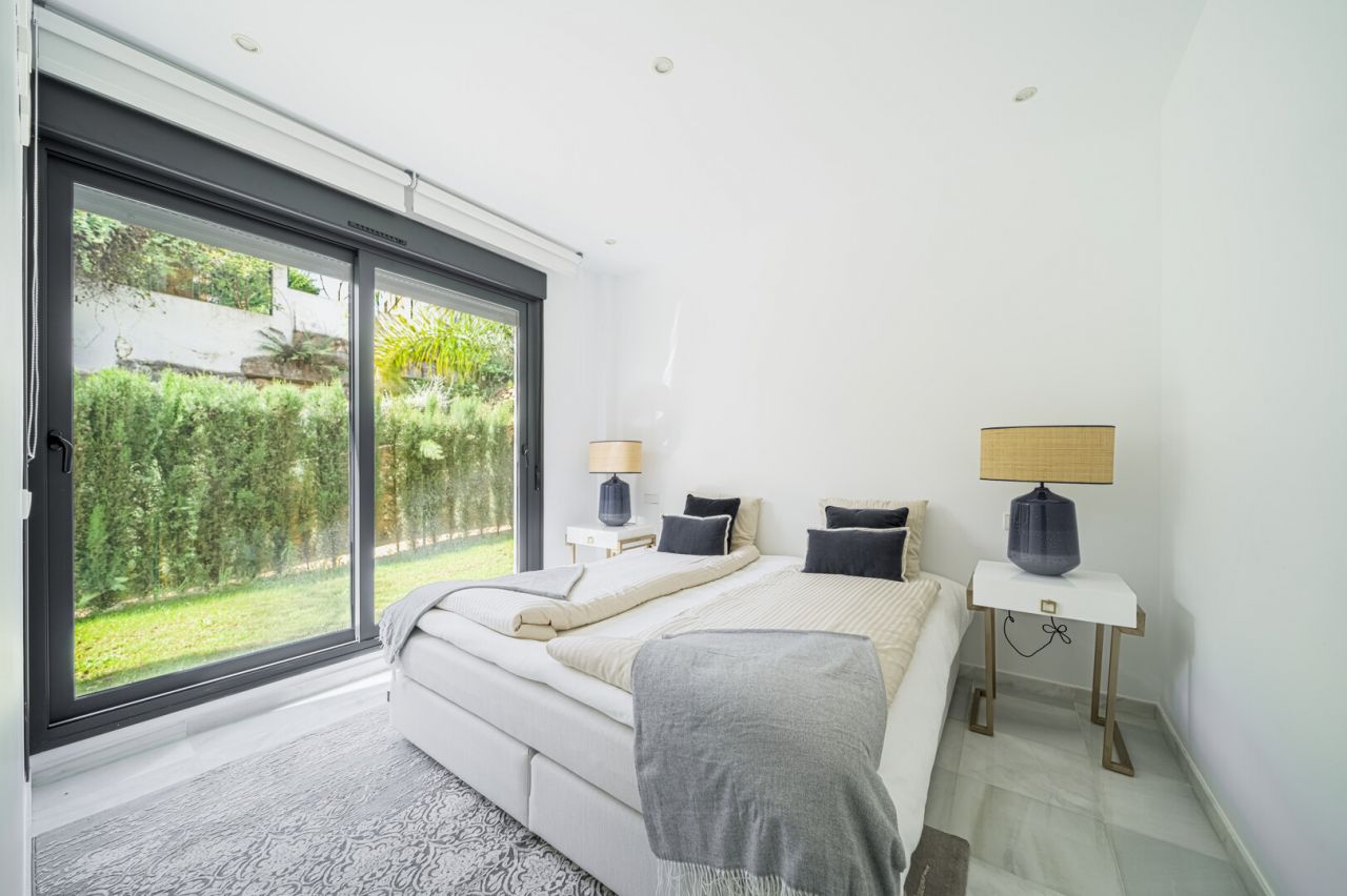 Byt se skládá z prostorného obývacího pokoje spojeného s jídelnou se vstupem na velkou částečně krytou terasu s jídelním koutem, posezením a lehátky; samostatná plně zařízená a vybavená kuchyně s prádelnou; 3 ložnice, jedna z nich s vlastní koupelnou a zbytek sdílí koupelnu; toaleta pro hosty. K nemovitosti navíc náleží prostorná slunná zahrada. 1 parkovací stání a komora umístěná v podzemní garáži. Rezidenční komplex má plně vybavenou posilovnu a bazén. Tento plně oplocený rezidenční komplex byl dokončen v roce 2018 a nabízí společný bazén, kurt na paddle tenis a malou posilovnu.