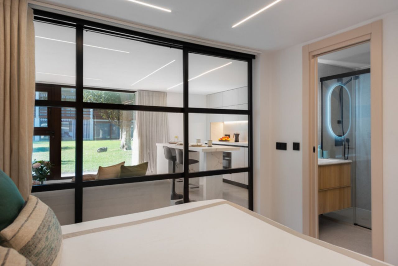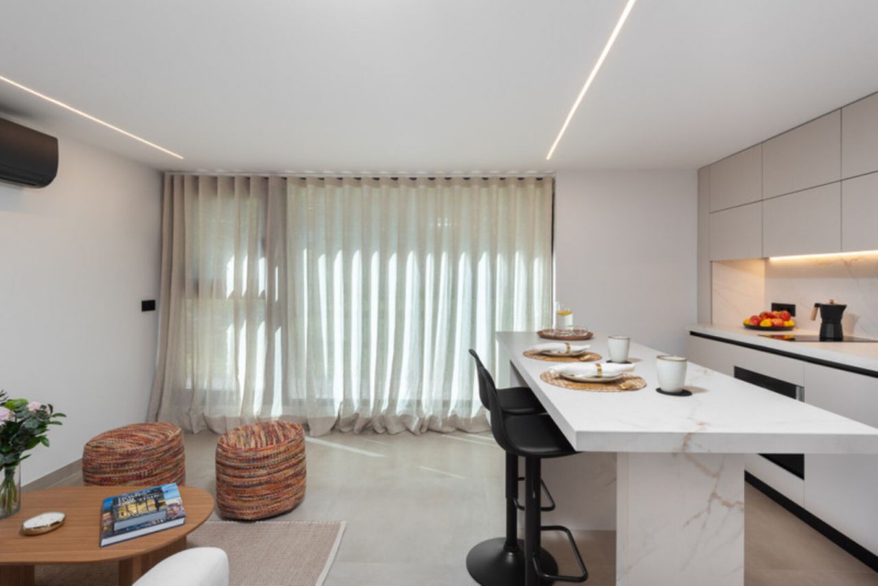 costa-del-solObjevte kouzlo pobřežního bydlení v tomto nádherně zrekonstruovaném přízemním apartmánu, který se nachází jen pár kroků od nedotčených pláží San Pedro de Alcántara. Tento moderní dům se nachází nejen v blízkosti pláže, ale také v docházkové vzdálenosti od půvabného města San Pedro, obklopeného širokou škálou služeb pro vaše pohodlí. Byt se zelenou soukromou zahradou má promyšlenou dispozici s přívětivou vstupní halou vedoucí do světlého obývacího pokoje harmonicky propojeného s otevřenou kuchyní. Tento prostor se otevírá přímo do zahrady, ideální pro venkovní relaxaci a zábavu. Flexibilní dispoziční řešení zahrnuje dvě nadstandardně vybavené ložnice a dvě moderní koupelny, které nabízí možnost přestavět jeden z pokojů na apartmá nebo funkční kancelář. Komunikace je vynikající, do rušného centra Marbelly je to pouhých 12 minut a okouzlující Puerto Banus pouhých 7 minut jízdy autem.