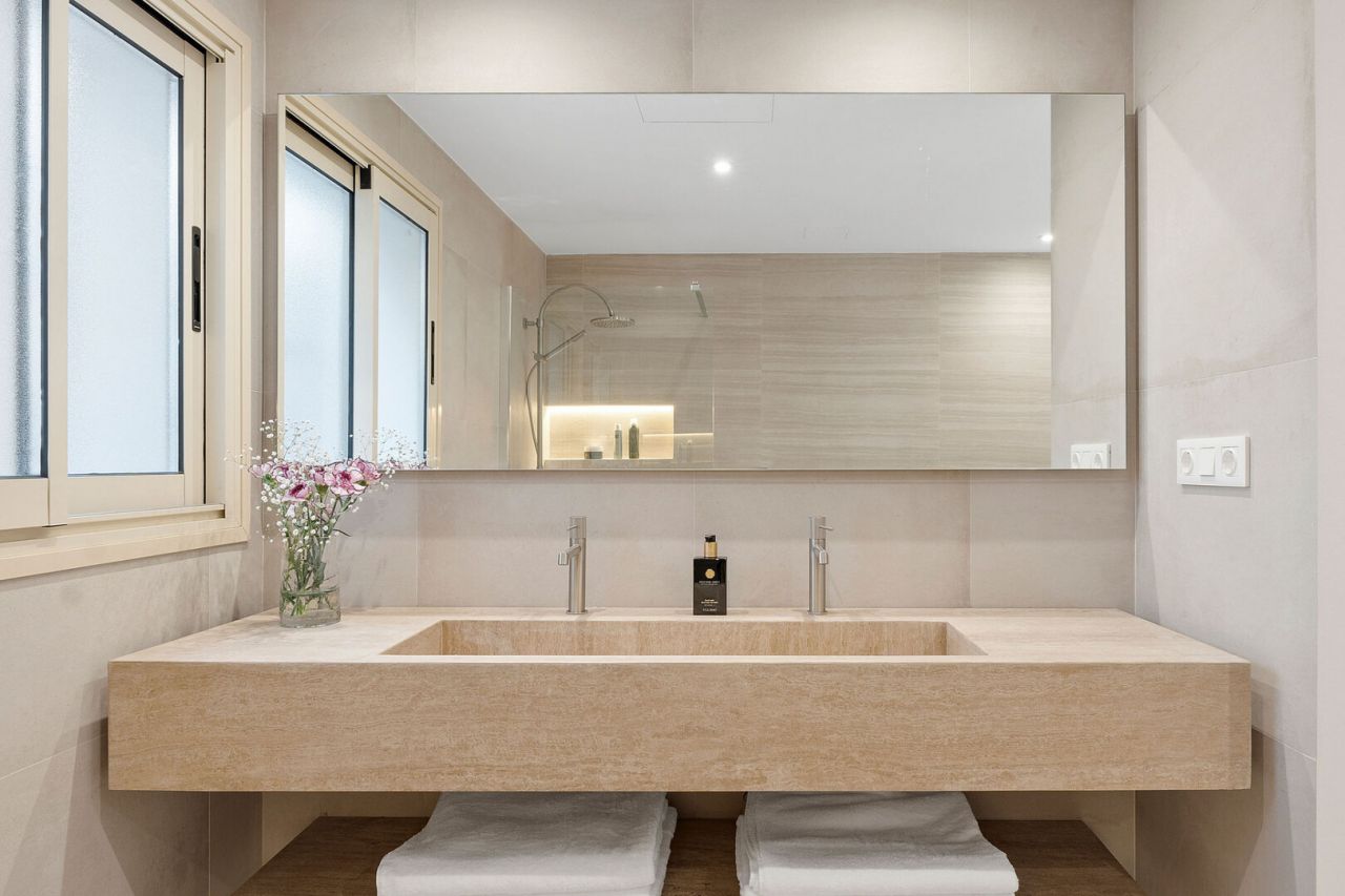 Apartmán Adrienne je luxusní čtyřložnicový apartmán s vlastním bazénem a zahradou, který nabízí úchvatný výhled na moře a hory. Tento zrekonstruovaný přízemní apartmán je oázou moderního pařížského bydlení v srdci Nueva Andalucia, La Cerquilla. Pozemek má strategickou jihovýchodní orientaci, poskytuje světlé a slunné prostory po celý den. Jeho unikátní dispozice zahrnuje kancelář s přilehlou prádelnou u vstupu, ložnici s vlastní koupelnou vpravo, na ni navazuje prostorná koupelna a další ložnice. Srdcem domova je stylová, otevřená kuchyně a obývací pokoj, který vede přímo na venkovní terasu s jídelním stolem a lehátky u soukromého bazénu. Hlavní ložnice s vlastní koupelnou má výhled do klidné zahrady a nabízí nádherný výhled na moře a hory. Nedávno zrenovovaný byt s vlastním nábytkem a mramorovými umyvadly odráží vytříbený vkus a smysl pro detail. Jeho soukromá zahrada a bazén spolu s přístupem ke dvěma společným bazénům poskytují dokonalou kombinaci intimity a společenského života. Nachází se v uzavřené komunitě Los Belvederes, tato nemovitost se nachází v exkluzivní oblasti Nueva Andalucia, obklopená prestižními golfovými hřišti, jako je Los Naranjos Golf, Aloha Golf a Las Brisas Golf. K nemovitosti patří také garážové stání, komora a je kompletně zařízen v pařížském stylu na míru.