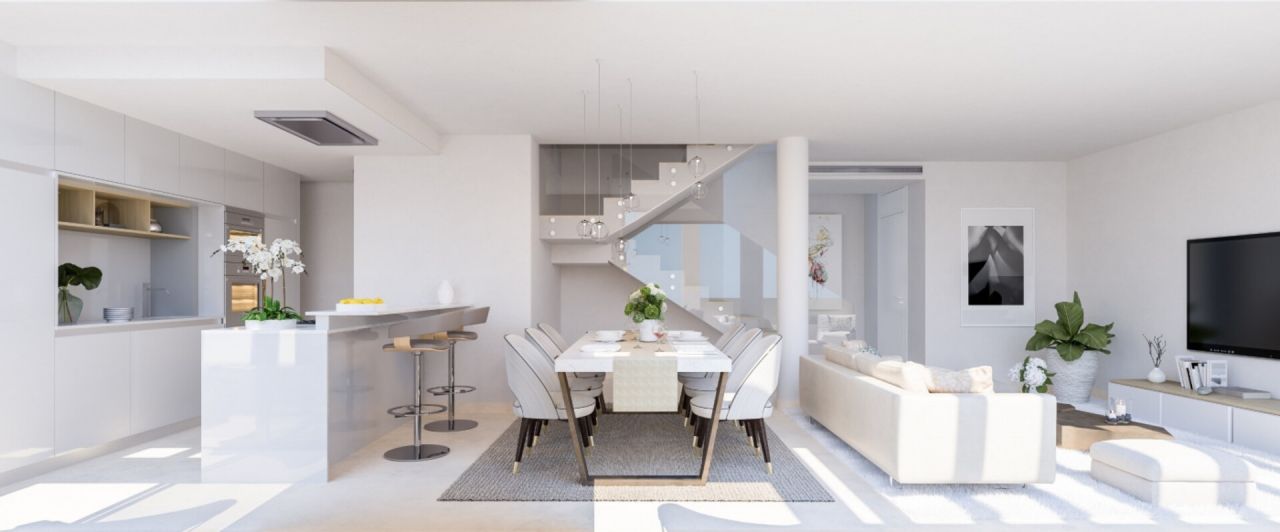Představujeme Vám luxusní komplex v Mijas Costa, skládající se z 9 exkluzivních domů, s nádherným výhledem na Středozemní moře, krásnými zahradami a bazénem umocňujícím krásu okolní přírody. Tento komplex inspirovaný andaluskou architekturou nabízí apartmány se 2 a 3 ložnicemi, 2 koupelnami, garážemi a komorami. Poloha je prostě úžasná - Mijas Costa se nachází v srdci Costa del Sol, jen pár minut od Fuengiroly a jen 20 minut od Marbelly. Lokalita má také výborné dopravní spojení do Malagy, na letiště, Esteponu, Benalmadenu a Puerto Banus. Devět domů, které tvoří komplex, bylo navrženo a postaveno podle nejvyšších standardů výstavby a povrchové úpravy. Projekt byl koncipován tak, aby co nejlépe využil jedinečné umístění, zajišťující optimální orientaci, soukromí a respekt k životnímu prostředí. Cena za přízemní byt 2+1 o celkové výměře 70m2 je 525 000€ a k bytu náleží vlastní zahrada o velikosti 124m2. Všechny domy nabízejí prostorné obývací pokoje s velkou dlažbou, integrované plně vybavené kuchyně s centrálním poloostrovem, pracovní desky Silestone, plné skříně, myčky, pračky/sušičky, lednice, sklokeramické sporáky, trouby a digestoře. Všechny ložnice mají elektrické rolety a hlavní ložnice mají vlastní koupelny a šatny nebo vestavěné skříně. Každý dům má systém vytápění a chlazení a vyhřívané podlahy v koupelnách. Všechny nemovitosti jsou vybaveny inteligentními domácími systémy a alarmy pro vaše pohodlí a bezpečnost. Nechte se okouzlit a představte si ohromující výhled na moře, který na vás čeká.