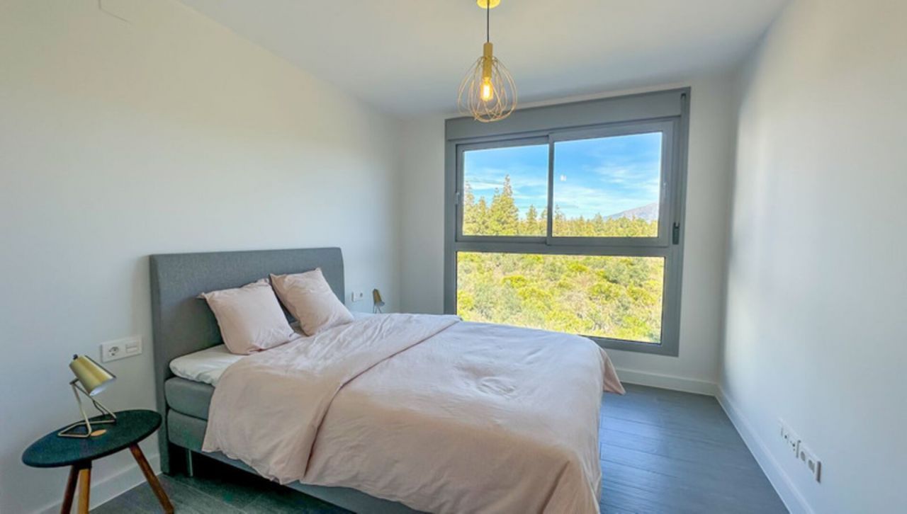 Moderní apartmán se 3 ložnicemi a 2 koupelnami, světlým a prostorným otevřeným obývacím pokojem a kuchyní s přímým vstupem na velkou terasu s výhledem na moře. Je zde plně vybavená moderní kuchyňská linka se všemi spotřebiči a technická místnost s pračkou. V bytě je klimatizace, vlastní parkovací stání v garáži a komora. Společné prostory zahrnují 2 velké bazény, z nichž jeden je vyhřívaný, posilovnu, krytý bazén, saunu a turecké lázně a běžeckou dráhu přímo před vašimi dveřmi. Velká společenská místnost s kuchyní. Snadno se dostanete do veškeré místní občanské vybavenosti, jen pár minut od pláže a útulného La Cala de Mijas. Vedle golfového hřiště El Chapparral. Bezpečná a soukromá komunita. Mijas Costa má ideální polohu pouhých 30 minut od letiště Malaga.