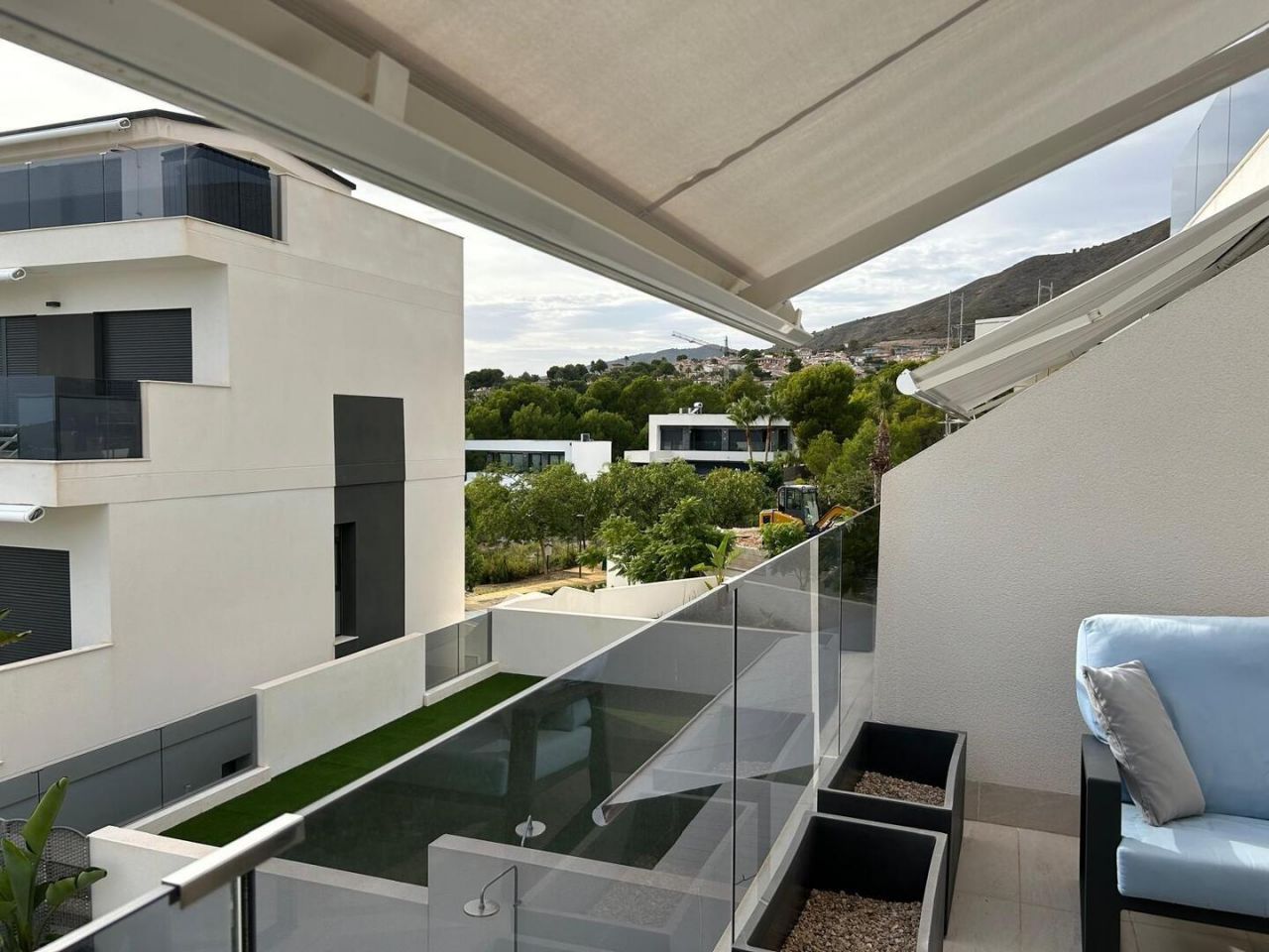 Vynikající, polo-nový apartmán v Sierra Cortina s výhledem na moře Jedna z nejlepších nemovitostí na Costa Blanca Tento apartmán nabízí 77 metrů čtverečních užitné plochy, pečlivě navržený pro pohodlí a komfort Vnitřní dispozice: - Prostorný obývací pokoj s plně vybaveným Kuchyň v americkém stylu a přímý vstup na velkou terasu, která také navazuje na hlavní ložnici - Hlavní ložnice je prostorný dvoulůžkový pokoj s vestavěnou skříní a vlastní koupelnou se sprchovým koutem šatní skříň a velké okno poskytující dostatek přirozeného světla - Pro další vybavení patří další plně vybavená koupelna. Vlastnosti urbanizace: - Velké veřejné prostory se dvěma bazény: velký a dětský bazén s vodopádem - Plně vybavená posilovna - Sauna a jacuzzi - Gril a dětské hřiště pokoj Lokalita: Byt má ideální polohu u všech potřebných služeb, pouhých 10 minut chůze od velkého nákupního centra a zastávek MHD (autobus a tramvaj). Je to 30 minut od mezinárodního letiště Alicante a poblíž oblíbených atrakcí, jako je Terra Mitica a Aqualandia. Kromě toho jsou krásné pláže Benidormu vzdálené jen 3 km. Tento hotel kombinuje moderní bydlení s prvotřídním vybavením, takže je ideální jak pro dovolenou, tak pro delší pobyty.