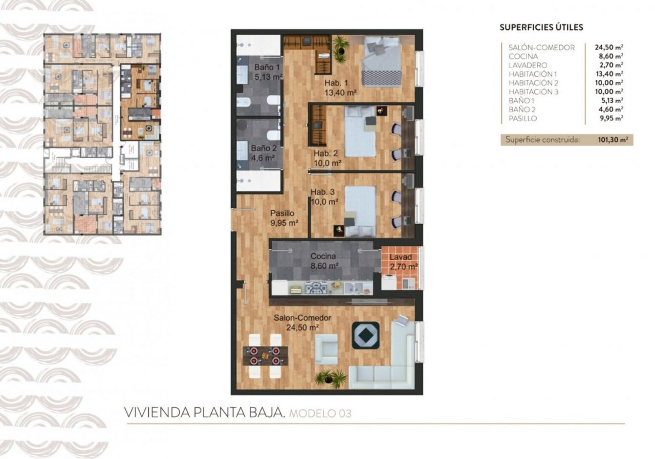 APARTMÁNY V NOVÉ BUDOVA V TORRE PACECO Nový rezidenční bytový komplex v Torre Pacheco (Murcia) v srdci Costa Cálida. První fáze zahrnuje 22 apartmánů se 2 a 3 ložnicemi. V komplexu je společný bazén, všechny apartmány mají vlastní solárium, podzemní garáž a sklad. Budova má 3 podlaží, 6 bytů v přízemí a 8 bytů v prvním a druhém patře. Veškeré vybavení je na dosah ruky. Během několika minut jízdy jsou supermarkety, lékárny, banky, školy, bary, restaurace, pláž a letiště. Město má golfový klub v těsné blízkosti apartmánů a několik golfových hřišť do 10-25 minut jízdy od apartmánů. Nedaleko se nachází dálnice AP-7, stejně jako dálnice N-332, která umožňuje snadný přístup do dalších regionů, jako je Pilar de la Horadada, San Pedro del Pinatar, Orihuela Costa, Torrevieja, Alicante atd. Mezinárodní letiště Murcia-Corvera je 20 minut jízdy a letiště Alicante je vzdáleno přibližně hodinu jízdy.