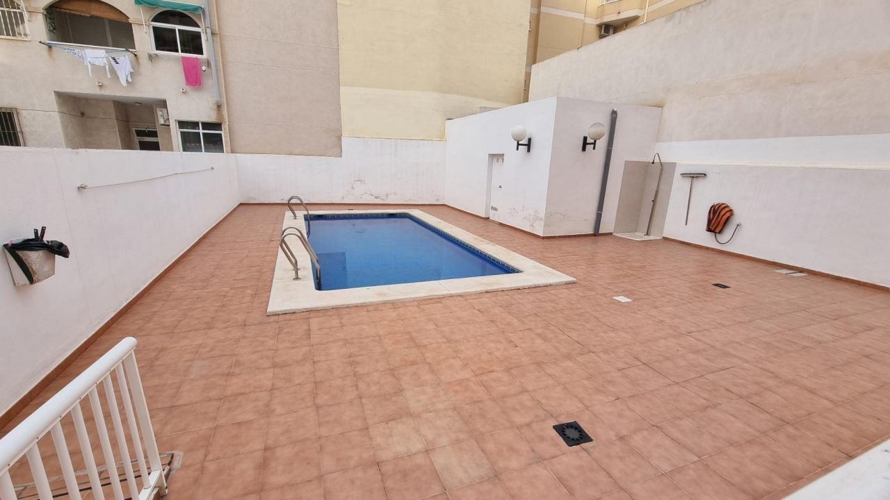 Studio na prodej v Torrevieja, oblast Centro. Celková plocha 41,00 m2, sestává z 1 pokoje (0 ložnic, 1 obývací pokoj), 1 koupelny, nachází se 800 metrů od moře. K dispozici jsou vestavěné skříně, balkon, společný bazén, terasa.