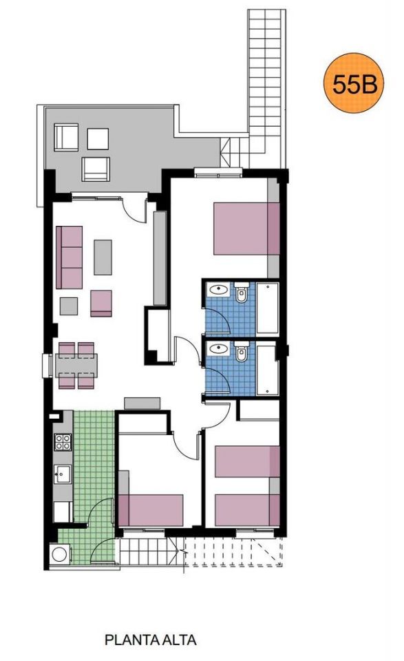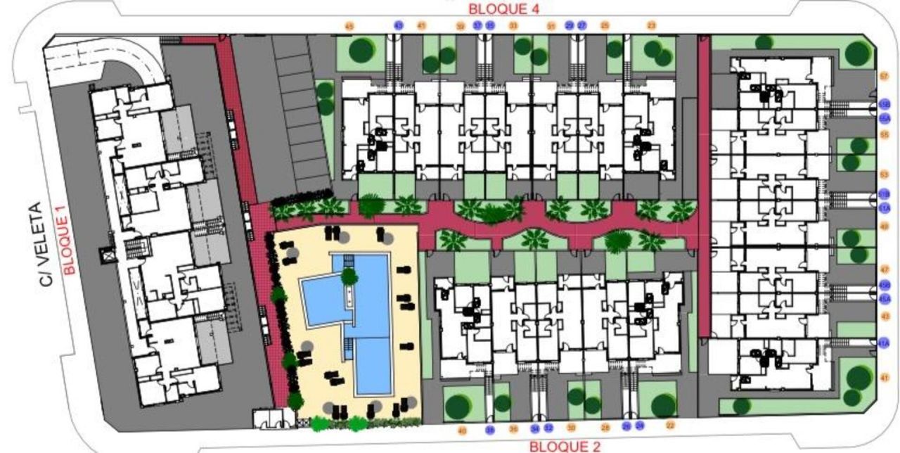 Komplex 16 apartmánů a 10 bungalovů v Torre de la Horadada 50 metrů od pláže s 2/3 ložnicemi a 2 koupelnami o celkové ploše 71,57 m2 s terasami od 10 m2 a/nebo soláriem od 55,33 m2. Plně vybavená kuchyň s domácími spotřebiči. Plně vybavené koupelny. Rezidence má bazén pro dospělé a děti s relaxační zónou a velkou zahradou. Předinstalace pro klimatizaci. Parkoviště. Klíče budou připraveny v květnu 2025. Podrobnější informace na telefonním čísle WhatsApp +34 664 25 63 71.