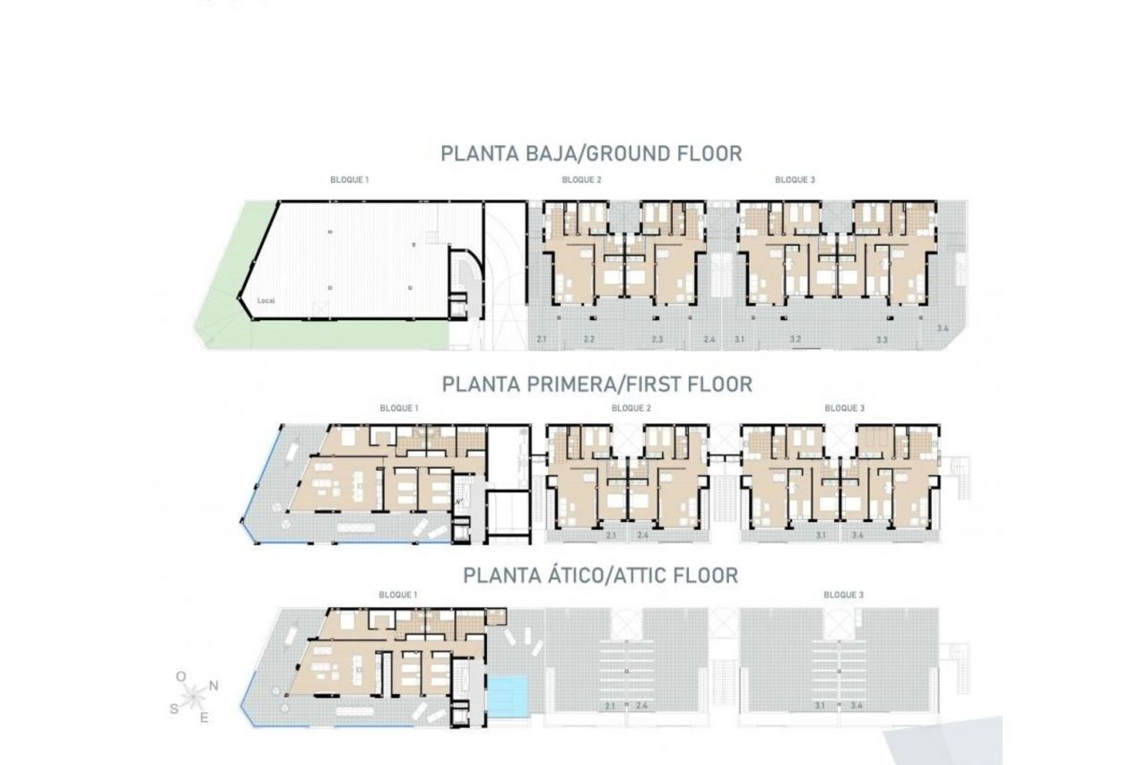 NOVÝ REZIDENČNÍ KOMPLEX V PILAR DE LA GORADADA Nový bytový komplex v moderním stylu skládající se z 8 bungalovů, apartmánů a penthousů se 2 a 3 ložnicemi, s velkou zahradou nebo soláriem. Budova s obchodními prostory v přízemí. K dispozici je také impozantní střešní bazén a garážové stání v suterénu. Komplex se nachází v bezkonkurenční enklávě uvnitř velké rezidenční čtvrti Pilar de la Horadada, privilegované místo pro rodiny se snadným přístupem ke všem typům služeb. Pilar de la Horadada je typická španělská vesnice v nejjižnější části Costa Blanca. Velká hlavní ulice má supermarkety, různé obchody, restaurace a bary a také některá krásná náměstí. Krásné pláže Torre de la Horadada a Mil Palmeras s jemným pískem a promenádou jsou vzdálené pouhých 5 minut jízdy. Letiště Corvera (Murcia) a Alicante jsou vzdáleny 40 a 55 minut.