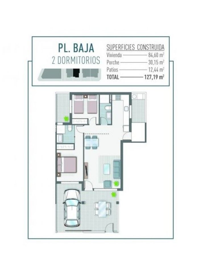 NOVÝ REZIDENČNÍ KOMPLEX V PILAR DE LA GORADADA Nový bytový komplex v moderním stylu skládající se z 8 bungalovů, apartmánů a penthousů se 2 a 3 ložnicemi, s velkou zahradou nebo soláriem. Budova s obchodními prostory v přízemí. K dispozici je také impozantní střešní bazén a garážové stání v suterénu. Komplex se nachází v bezkonkurenční enklávě uvnitř velké rezidenční čtvrti Pilar de la Horadada, privilegované místo pro rodiny se snadným přístupem ke všem typům služeb. Pilar de la Horadada je typická španělská vesnice v nejjižnější části Costa Blanca. Velká hlavní ulice má supermarkety, různé obchody, restaurace a bary a také některá krásná náměstí. Krásné pláže Torre de la Horadada a Mil Palmeras s jemným pískem a promenádou jsou vzdálené pouhých 5 minut jízdy. Letiště Corvera (Murcia) a Alicante jsou vzdáleny 40 a 55 minut.