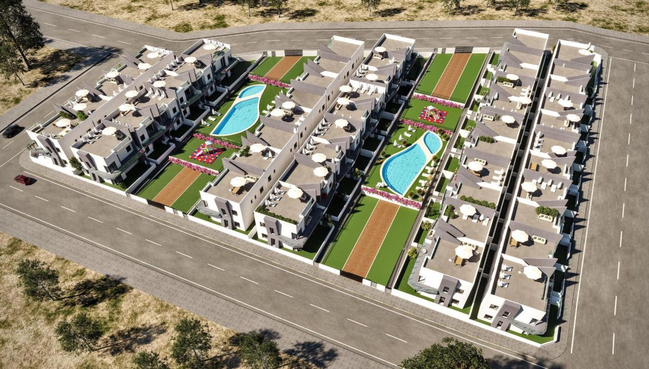 NOVÝ BUNGALOVOVÝ KOMPLEX V SAN MIGUEL DE SALINASNový vývoj bungalovů v San Miguel del Salinas Rezidenční komplex se skládá z 2 a 3 ložnicových bungalovových apartmánů, v přízemí s vlastní zahradou nebo v nejvyšším patře s privátním uzavřeným obytným komplexem se společným bazénem bazény pro dospělé a děti, zelené plochy, dětské hřiště Rezidenční komplex se nachází v San Miguel de Salinas v blízkosti golfových hřišť Las Colinas a Campoamor, nákupních center, lagun Torrevieja a La Mata a písečných pláží Orihuela Costa. Kvalitní paměti :Plně zařízená kuchyně s filtrační skupinou a indukční varnou deskou. Pancéřové vstupní dveře s panoramatickým kukátkem Porcelánové podlahy Kompaktní žaluzie Bílé laminované skříně s podkrovím v ložnicích Předinstalace splitové klimatizace v obývacím pokoji a ložnici San Miguel de Salinas je obec ve Valencijském společenství ve Španělsku. Nachází se na jihu provincie Alicante, v regionu Vega Baja del Segura, v blízkosti regionu Murcia je 35 minut jízdy a letiště Murcia Corvera je vzdáleno přibližně 1 hodinu.