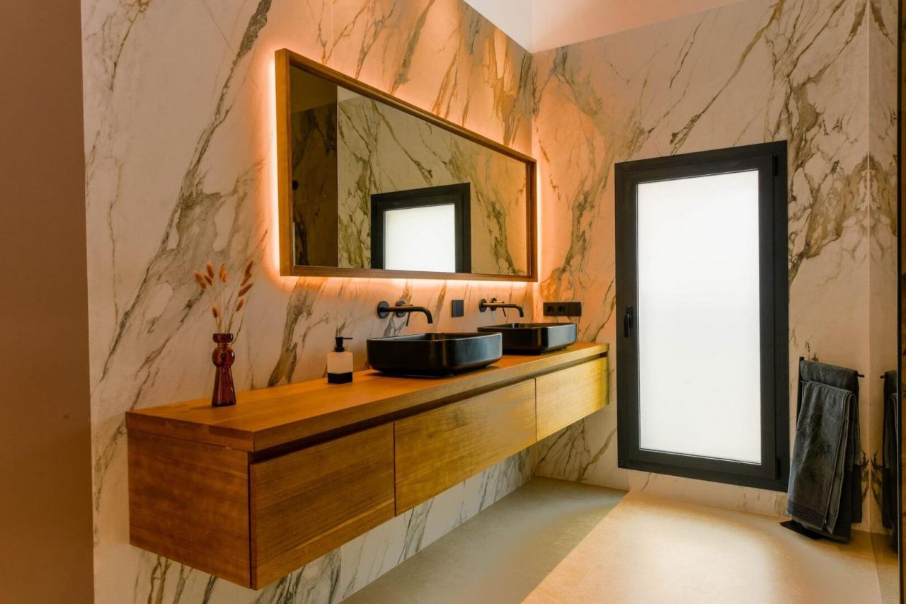 NOVÁ LUXUSNÍ VILA V ALBIR S VÝHLEDEM NA MOŘE Luxusní novostavba vila s avantgardním designem, charakteristická čistými liniemi a vybranými materiály. Působivá okna od podlahy ke stropu zachycují podstatu prostředí a naplňují každý prostor přirozeným světlem a mořským vánkem. Srdcem luxusní vily je prostorný obývací pokoj, který nabízí bezkonkurenční panoramatické výhledy. Vila se může pochlubit 4 prostornými ložnicemi a 6 luxusními koupelnami, všechny s high-end povrchovou úpravou odrážející nesrovnatelný styl. Otevřená kuchyně vybavená nejlepšími spotřebiči a skvělým výběrem povrchových úprav je srdcem tohoto domova, místem, kde se funkčnost snoubí s krásou. Sálavé vytápění a krb navíc zajistí ideální teplotu a útulnou atmosféru v každém ročním období. Suterén má otevřený plán a prostor pro 6 aut. V suterénu lze dle vkusu klienta zařídit sklep, tělocvičnu nebo kinosál. Soukromý bazén obklopený svěžími zahradami s výhledem na celý záliv El Albir a Altea a také na pohoří Sierra Helada. Tato exkluzivní nemovitost je připravena k dokončení, aby si ji mohl užít náročný kupující hledající perfektní kombinaci luxusu, pohodlí a životního stylu. A co je nejdůležitější, budete si moci vychutnat dechberoucí západy slunce, které poskytuje jeho privilegovaná poloha v oblasti majáku L'Albir, skutečného ráje na pobřeží Costa Blanca. Vila se nachází pouhých 400 metrů od křišťálově čistého Středozemního moře a idylické pláže Albir.