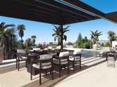 NOVÉ VILY V MARBELLE Nový komplex vil v Marbelle, který se nachází na jedinečném a privilegovaném místě, kde v docházkové vzdálenosti můžete mimo jiné k moři s jeho promenádou a různými promenádami a gastronomickými nabídkami, centrum San Pedro de Alcantara , stejně jako slavné Puerto Banus. centrum města, stejně jako slavné Puerto Banus. Skládá se ze 7 exkluzivních vil umístěných v uzavřené komunitě s velmi pečlivým architektonickým řešením a vynikajícími službami. Jeho architektura splňuje moderní kritéria založená na klasických liniích velké elegance, integrovaná do prostředí, s kombinací materiálů a povrchových úprav, které byly pečlivě navrženy pro každou oblast nebo místnost domu. SKŘÍNĚ A ŠATNÉ MÍSTNOSTI - Hlavní ložnice má šatnu s LED osvětlením a funkčním rozvodem se zásuvkami a skleněnými policemi. - V ložnicích 2, 3 a 4 jsou šatní skříně DICA s funkčním rozmístěním polic, zásuvek a dvířek. - V předsíni jsou police, zásuvky a dvířka. BULTHAUP Kitchen je společnost specializující se na používání přírodních materiálů nejvyšší kvality ve svých kuchyňských systémech, vybraných pro jejich použitelnost, odolnost a autentičnost, aniž by se zapomínalo na ekologii a harmonii mezi materiály a barvami. Kuchyň je vybavena spotřebiči SIEMENS STUDIOLINE, vysoce výkonnými spotřebiči s moderním designem, na které je poskytována záruka 10 let. SYSTÉM VIDEO DOMÁCÍHO TELEFONU. SYSTÉM ŘÍZENÍ PŘÍSTUPU. - Obecný modul videotelefonu u vstupní brány do ulice. - Individuální modulární venkovní IP video interkom modul s 1 volacím tlačítkem v každé domácnosti. - Interní IP konzole s dotykovou obrazovkou pro IP Wifi video přístupový systém. KLIMATIZACE, TOPENÍ A VĚTRÁNÍ - Klimatizace v celém domě se systémem tepelného čerpadla a vzduchovodů, nezávislé ovládání pro každou místnost, typ AIRZONE, integrovaná do systému domácí automatizace. Distribuce v hlavních místnostech se provádí pomocí lineárních difuzorů integrovaných do architektury domu a mříží v závislosti na místnostech. - Vytápěné podlahy v 1. a 2. patře pomocí aerotermálního systému, s výjimkou všech koupelen, kde budou podlahové vytápění elektrické. Řídicí systém integrovaný do systému domácí automatizace s nezávislými termostaty podle zóny. - Mechanická ventilace s potrubním a odsávacím systémem zajišťující optimální kvalitu vnitřního vzduchu v souladu s technickým stavebním předpisem DB-HS3. VÝTAH - Výtah se 3 zastávkami pro 4 osoby a bezbariérovým přístupem, ze suterénu do prvního patra. NABÍJECÍ BODY PRO ELEKTRICKÁ VOZIDLA - Nabíjecí stanice pro elektromobily na parkovišti. SYSTÉM DOMÁCÍ AUTOMATIZACE (CONTROL SYSTEM) - Řídicí systém Domotic vyvinutý společností ILLUSION se zařízením LUTRON pro ovládání klimatizace/topení, zvuku a osvětlení. ZAHRADY A ZÁVLAHY - Terénní úpravy v souladu s návrhem sadových úprav a stávajícími stromy. - Automatický zónový závlahový systém s postřikovači na trávníku a kapkovou závlahou v krajinných oblastech. Nádrž na vodu o objemu 3 000 litrů. BAZÉN - Bazén cca 55 m2, spojující dům se zahradou, ve tvaru L s balkonem jídelny a se dvěma různými hloubkami, pro plavání a relaxaci. Křižuje ji chodník se zahradními schody, který ji spojuje s barem u bazénu, a nabízí vodopád z terasy ve druhém patře, který vytváří vodní clonu mezi bazénem a jídelnou. - Na jednom konci bazénu jsou plošiny typu DECK pro lehátka a další nábytek. ZABEZPEČOVACÍ SYSTÉM - Komplexní projekt zabezpečení celého areálu. - Domy budou vybaveny obousměrným mikroprocesorovým poplachovým centrem s úplným nebo částečným programováním, poplachovým přijímacím centrem, GPRS a IP modulem. Čidla obsazenosti ve všech místnostech a siréna. - Aktivace a deaktivace budou integrovány do systému domácí automatizace a lze je ovládat z klávesnice v domácnosti nebo prostřednictvím aplikace. - Poplachový systém je také vybaven záplavovým čidlem v místnostech. - Po obvodu areálu a u vjezdů na společnou komunikaci bude instalován video monitorovací systém s barevnými CCD kamerami SONY 7/3' s výkonnými IR LED napojenými na digitální záznamník. PŘÍDAVNÉ SOLÁRIUM - Přístup do solária je po kompletním schodišti a výtahu, integrovaný jako další patro domu. - Poslední schodiště bude otevřeno ven velkými otvory ve fasádě. - Skleněné zábradlí v přední části terasy poskytuje nerušený výhled do zahrady. - Pergoly na střeše v blízkosti odpočívadla a schodiště, stejně jako v prostoru kuchyně/grilování. - Instalace pro venkovní kuchyně a/nebo gril, osvětlení a zásuvky. - Nadzemní bazén s lavicí po obvodu a výhledem do zahrady cca 16 m2. - Relaxační zóna s lehátky nebo nábytkem na terase s výhledem do zahrady.
