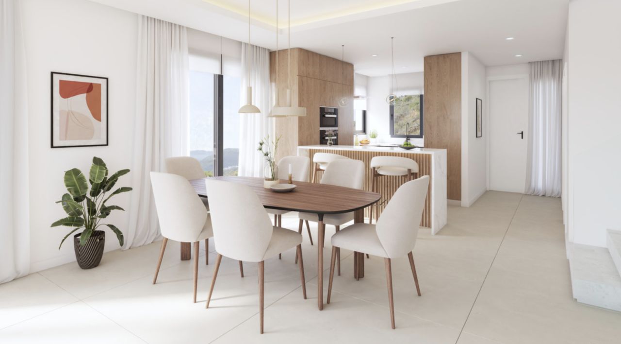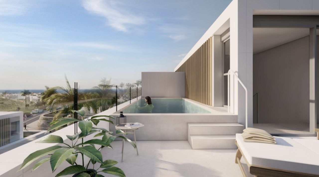 VÝVOJ Pro tento exkluzivní nový butikový projekt 10 připojených vil byl vybrán pozemek s úžasným výhledem na moře, golf a hory. ARCHITEKTURA A DESIGN Architektura se snaží o maximální expresivitu kombinací tří materiálů. Bílá fasádní úprava nám přibližuje atmosféru slunce a pláže, v kombinaci s tmavě šedým kamenem vytváří prostory větší hloubky, vertikální prvky z hliníku v imitaci dřeva dodávají teplo, které je vidět na snímcích. Díky materiálům nenáročným na údržbu jsou tyto fasády nejen působivé, ale také harmonické s okolím. KVALITA Když kvalitou domu není jen estetika, ale také použití špičkových materiálů, pečlivá stavební práce a vynikající dokončovací práce. Moderní od základů, vyrábí horkou vodu a horko-studenou klimatizaci, s centralizovaným aerotermálním systémem, čistým způsobem výroby energie. Stejným způsobem je napájen i sálavý podlahový systém. VILY Skládají se z rodinných vil o třech podlažích, mají 4 ložnice, 3-4 koupelny, 1-2 toalety a kancelář. Vily umístěné na nárožích mají vlastní zahradu a soukromý bazén s chlorovanou solí. Centrální vily mají ve třetím patře domu bazén. Otevřené a funkční prostory jsou bezpochyby hlavními postavami domů, spojují nás s terasami a jejich krásnými výhledy na moře, golfové hřiště a hory. POPIS AREÁLU Nový rezidenční komplex se nachází v jednom z nejvýznamnějších měst Costa del Sol, Estepona, tzv. Zahrada Andalusie. Jen 30 km od města Marbella má tato obec více než 21 km pobřeží, kde můžete objevit její kouzelná zákoutí a kosmopolitního ducha. Urbanizace se nachází na západě Estepony, v rezidenční čtvrti, která je v aktivní zástavbě luxusních domů. Pouhých 5 minut jízdy autem od centra Estepony a velmi blízko pláží, je blízko nové nemocnice Estepona a nového golfového hřiště Azata. V blízkosti restaurací, supermarketů, pláží, golfových hřišť a služeb. Je to jen 20 minut autem od Puerto Banus, Marbella a Sotogrande, 50 minut od mezinárodního letiště Malaga a 40 minut od letiště Gibraltar.