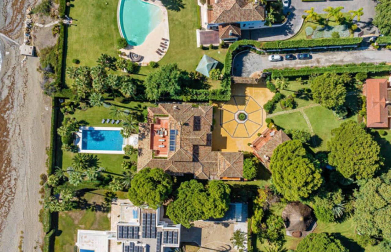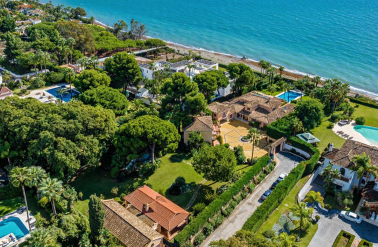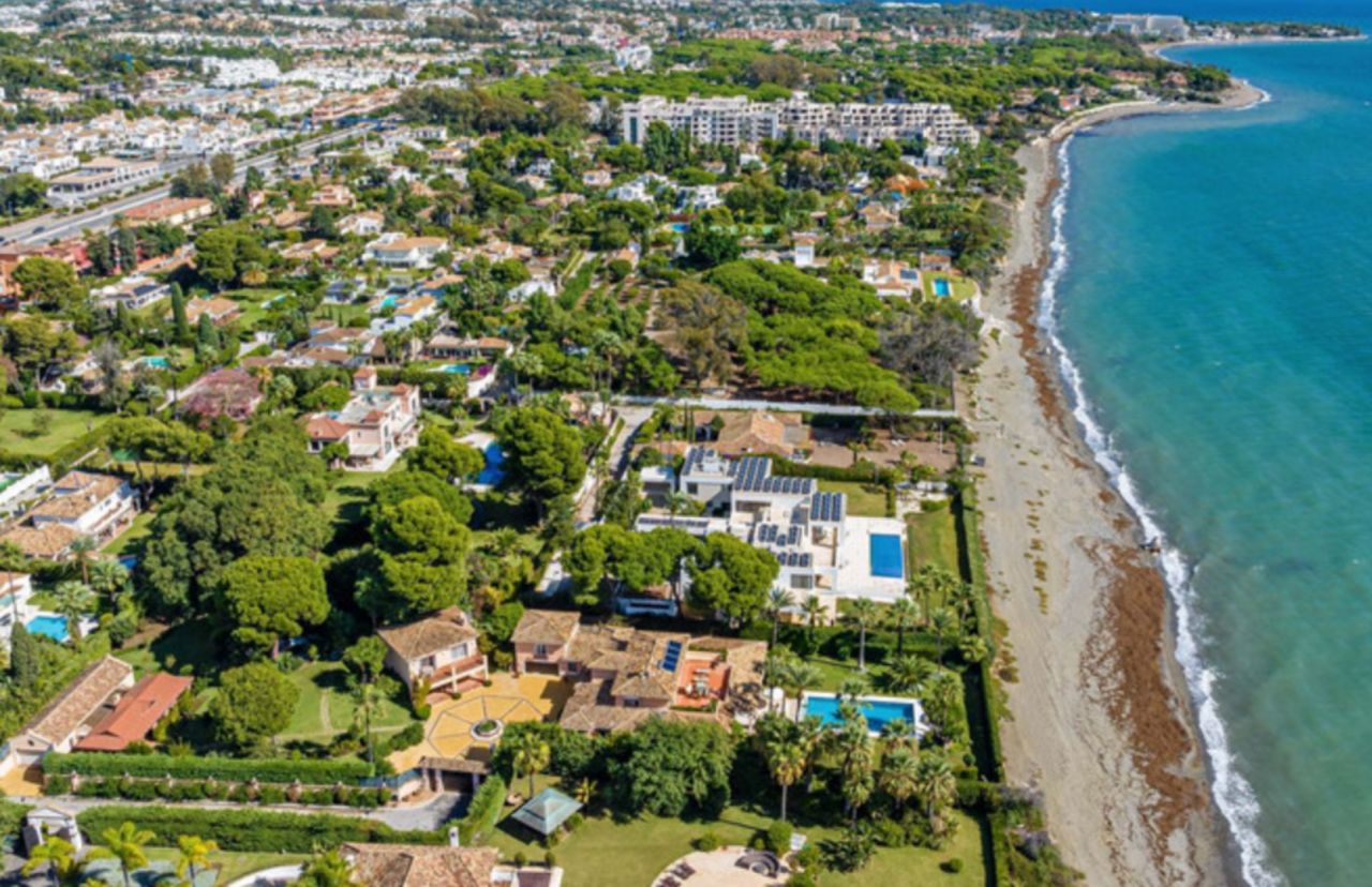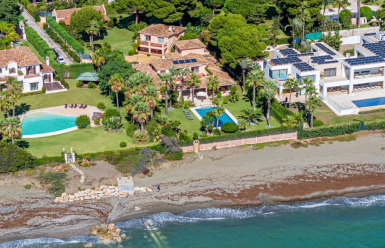 costa-del-solOhromující vila na pobřeží, na velkém pozemku s přímým přístupem k moři (soukromý přístup), v klidné zelené oblasti na Nové zlaté míli. Na pozemku jsou dva obytné dvoupatrové domy: Hlavní dům 6 ložnic: Prostorné pokoje, hlavní ložnice ve druhém patře s přímým výhledem na moře. Penzion: 2 ložnice, obě s koupelnami. Obytná plocha: Prostorný obývací pokoj s otevřenou kuchyní. Prádelna a sklad. - Garáž pro 2 auta - Obytné prostory: Zahrnuje prostornou halu, moderní kuchyň, jídelnu, dvě velké terasy a toaletu pro hosty - Moderní vany, vyhřívané podlahy - Krb: Vytváří útulnou atmosféru v hlavní obytné místnosti. Přístavba - Garáž: Pro 4 auta. - Kuchyně a gril: Ideální pro večírky. - Dětské hřiště: Pro zábavu dětí. Venkovní vlastnosti - Velký bazén - Rybník - Dobře udržovaná zahrada: S pomerančovníky a citroníky, palmami a další exotickou vegetací. - Bezpečnostní systém: Videokamery po celém obvodu pro naprostý klid. Vlastnosti - Terasy: Hlavní ložnice a další ložnice ve druhém patře sdílejí velkou terasu s úžasným výhledem na moře. - Kompletně zařízeno: Všechny domy jsou připraveny k nastěhování, stylově zařízené a vybavené kvalitním nábytkem. - Světlé a vzdušné: Domy jsou navrženy tak, aby maximalizovaly přirozené světlo a prostor, přičemž všechny ložnice a obývací prostory jsou prostorné. Tato nádherná nemovitost spojuje luxus, pohodlí a bezpečnost a nabízí bezkonkurenční přímořské bydlení. Užijte si dokonalou kombinaci moderního vybavení a přírodních krás v tomto idylickém pobřežním ráji.