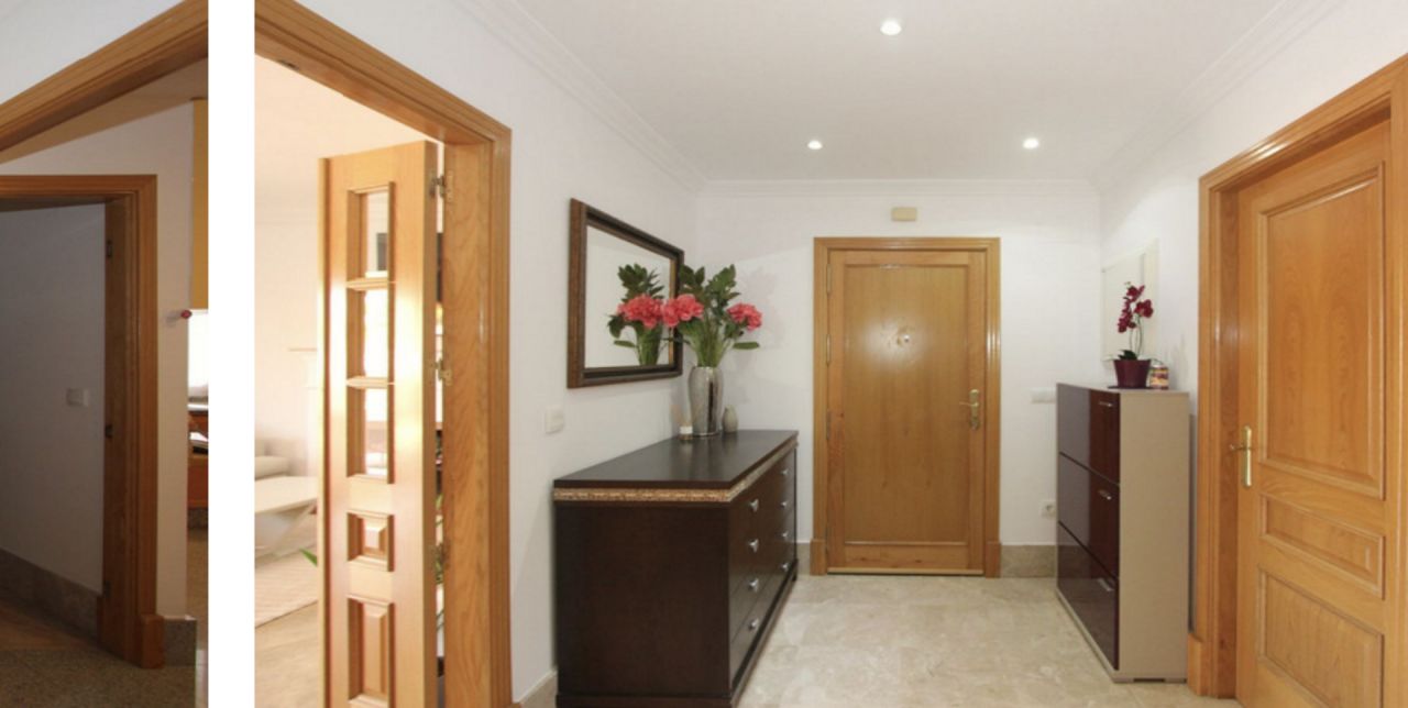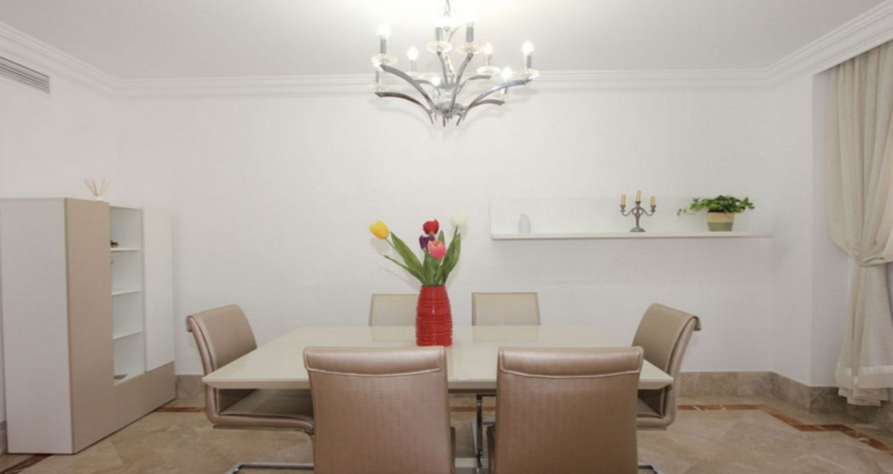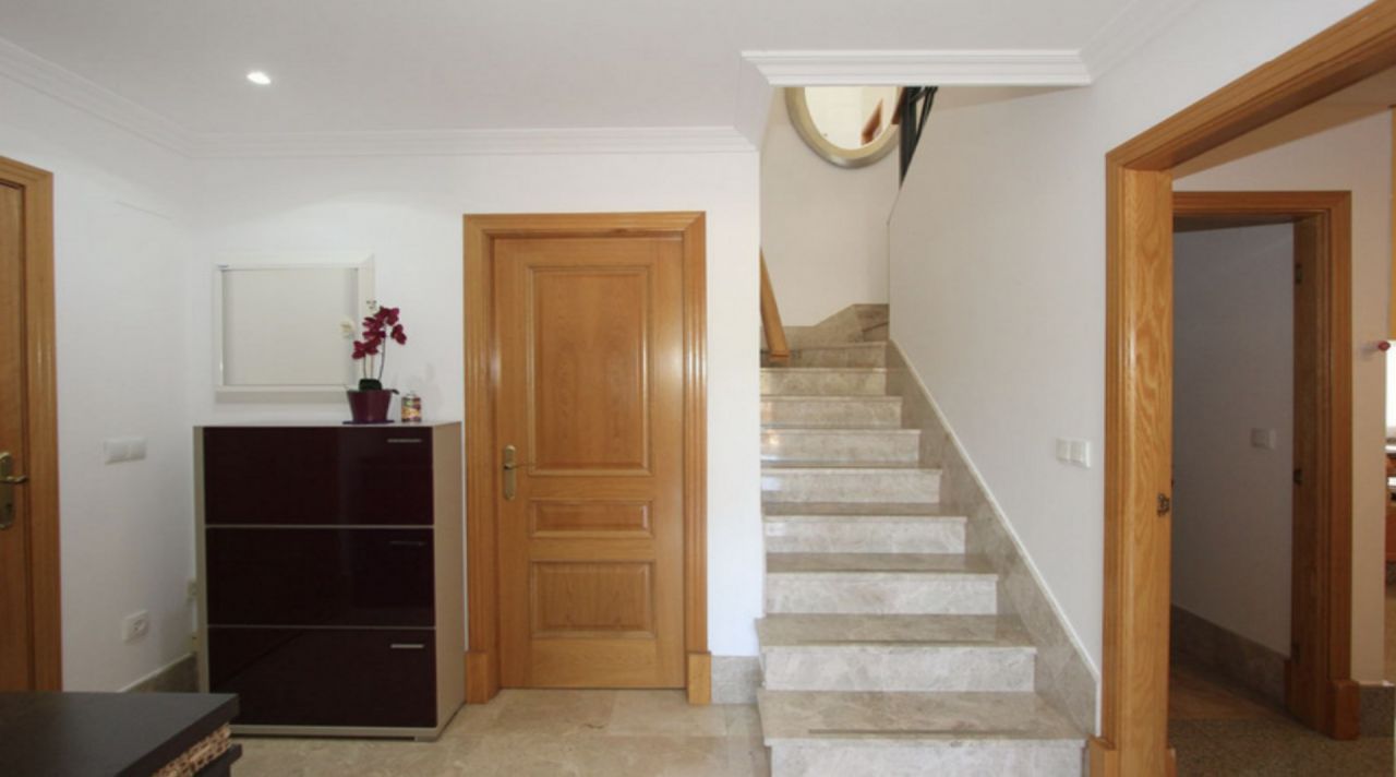 Vítejte ve svém vysněném domě v exkluzivní komunitě Santa Clara Golf Club v Marbelle! Tato prostorná dvojvila se nachází v bezpečné, uzavřené komunitě a nabízí ztělesnění luxusního životního stylu. Vstupte do světa klidu a elegance, kde 24hodinová bezpečnost zajišťuje váš klid. Ponořte se do středomořského životního stylu ve dvou společných bazénech, ideálních pro osvěžení za slunečných dnů nebo relaxaci na španělském slunci. Tato vila se nachází v žádané východní části Marbelly, v blízkosti základní občanské vybavenosti. Díky nedaleké prestižní nemocnici Costa del Sol budete mít své zdraví a pohodu vždy na dosah ruky. Užijte si prvotřídní pohostinnost ve vyhlášeném hotelu Los Monteros, který je jen pár kroků odtud, nebo si odpočiňte v exkluzivním plážovém klubu La Cabana, kde si každý den připadáte jako na dovolené. Vila má tři podlaží. V hlavním patře Vás přivítá hala vedoucí na toaletu pro hosty se sprchovým koutem, prostorný obývací pokoj, jídelna a kuchyně vybavená moderním nábytkem. Obývací pokoj plynule navazuje na rozlehlou krytou terasu s výhledem na venkovní terasu pro maximální klid. V horním patře najdete tři elegantní ložnice, každá s vlastní luxusní koupelnou. V hlavní ložnici je navíc samostatná šatna, která přidává na sofistikovanosti bydlení, a velká terasa s výhledem na golfové hřiště. Druhá ložnice má výhled na moře a třetí má malou terasu s výhledem na golfové hřiště. Po sestupu do nižšího patra najdete další dvě ložnice plus obývací pokoj doplněný luxusní koupelnou s vířivkou. Prostorný úložný prostor a velká šatna poskytují praktičnost a organizaci. K dispozici je také garáž pro dvě auta, doplněná veřejnými parkovacími místy pro větší pohodlí. Tato vila není jen dům; je to prohlášení o vašem životním stylu. Od prostorných interiérů až po pečlivě navržená prostředí, každý aspekt vyzařuje sofistikovanost a pohodlí. Ať už bavíte hosty v prostorných obytných prostorách nebo si užíváte večeři na soukromé terase, každý okamžik je plný luxusu a stylu. Celou plochu přízemí je možné spojit do velkého otevřeného prostoru, spojujícího kuchyň, jídelnu a obývací pokoj dohromady. Nenechte si ujít svou šanci vlastnit dům v Marbelle. Využijte příležitosti přizpůsobit si tuto nádhernou vilu a začněte žít život, o kterém jste vždy snili.