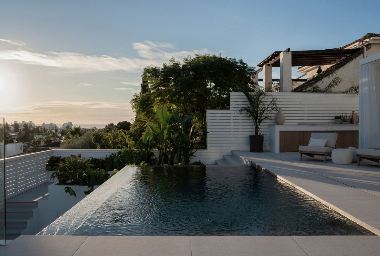 Vila se nachází v kopcích půvabné dolní části Nueva Andalucía, v docházkové vzdálenosti od módního Puerto Banus a pláže. Tato vila je rozdělena do 2 podlaží, která nabízí obývací pokoj s otevřenou kuchyní na míru a spotřebiči Miele. Z jídelny je přímý vstup do venkovní kuchyně a bazénu, kde si můžete po celý rok užívat koupelnu. Nový majitel bude mít možnost vybrat si mezi 5. ložnicí, kinosálem nebo tělocvičnou. Vezměte prosím na vědomí, že přidání kteréhokoli z těchto pokojů bude za příplatek.