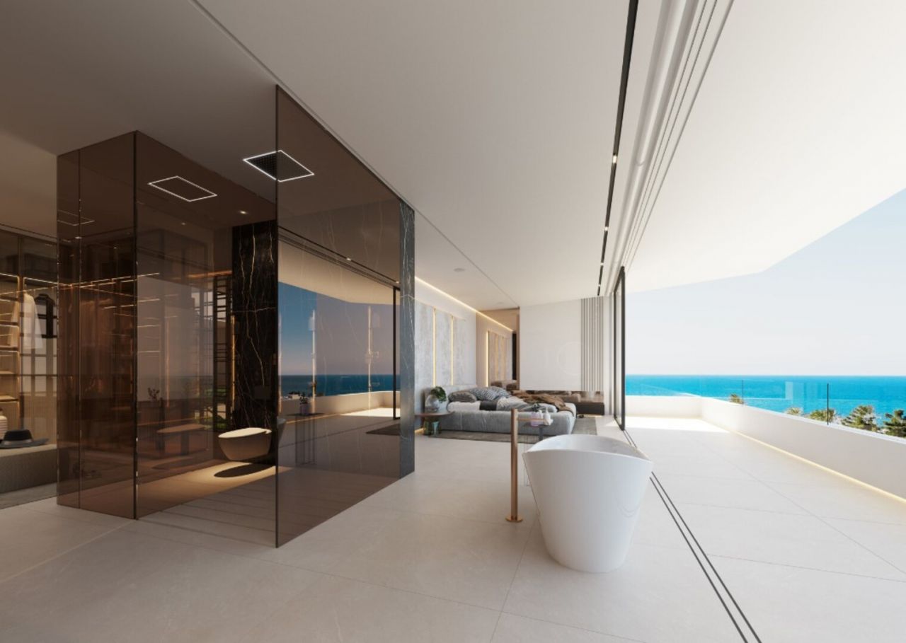 costa-del-solTato úžasná nová vila se nachází v sofistikovaném a exkluzivním rezidenčním komplexu zahrnujícím šest luxusních vil. Moderní urbanizace má úžasnou polohu mezi Marbellou a Puerto Banus v oblasti Atalaya de Río Verde. Ideální poloha jen pár kroků od městské občanské vybavenosti a nejlepších pláží Marbelly. Pro ty, kteří hledají pohodlný, moderní a přitom elegantně zařízený dům s úchvatným výhledem na Středozemní moře, je tato nemovitost ideální volbou. Tato exkluzivní rezidence ztělesňuje skutečnou moderní eleganci s vynikajícími architektonickými detaily, otevřeným obývacím prostorem, výraznou barevnou paletou, celoplošnými okny a skleněnými dveřmi, které harmonicky propojují exteriér a interiér a vytvářejí prostor plný světla a elegantní moderní Podívejte. Všechny čtyři úrovně jsou propojeny moderním výtahem. Nenechte si ujít příležitost vlastnit tuto vysoce kvalitní luxusní rezidenci! V současné době jsou k dispozici pouze dvě vily. Dokončení stavby je plánováno na duben 2024.
