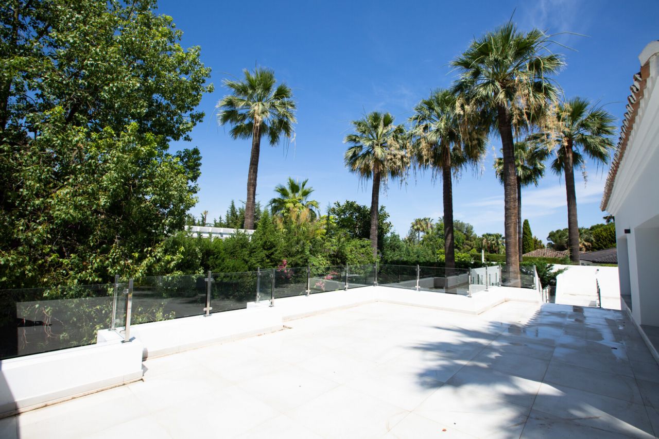Objevte tuto nádhernou nemovitost, která se nachází v srdci golfového údolí Nueva Andalucia, obklopena prestižními golfovými hřišti, jako jsou Las Brisas, Los Naranjos a Aloha. Má 4 ložnice s vlastní koupelnou a nabízí řadu působivých zařízení. V hlavním patře vás přivítá prostorný obývací pokoj s toaletou pro hosty a velkolepá hlavní ložnice s vlastní koupelnou a šatnou. Kromě toho zde najdete další ložnici s vlastní koupelnou a plně vybavenou moderní kuchyní. Z tohoto podlaží je přístup na dvě velké terasy s úžasným výhledem do spodní části, kde je venkovní bazén obklopený bujnou tropickou zahradou.