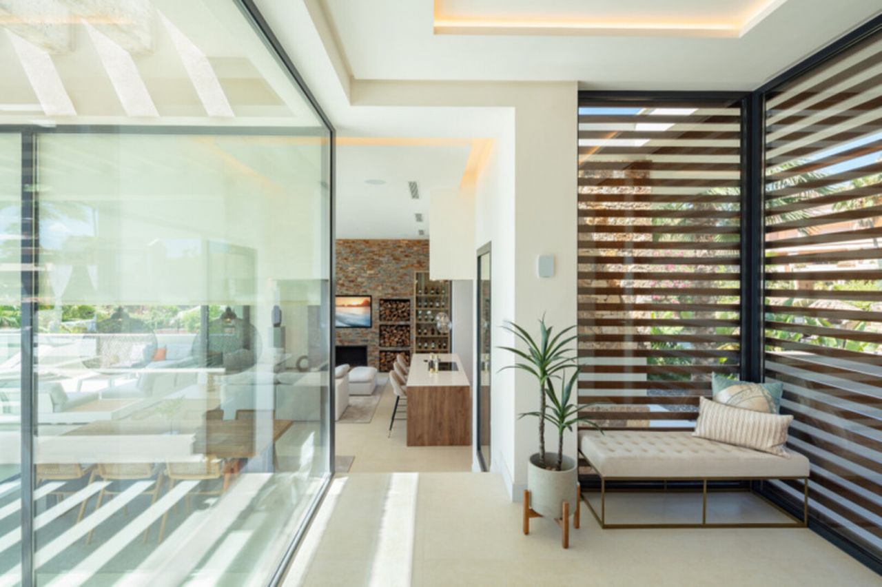 Tato vila se nachází v komplexu 5 nových luxusních vil na vyvýšeném místě v prestižním golfovém údolí Nueva Andalucia a nabízí nádherný výhled na hory a moře. Anamaya 2 s moderním designem má dokonalý panoramatický výhled na Středozemní moře až po africké pobřeží. Plynulý tok mezi vnějškem a vnitřkem vytváří základ pro typický snadný středomořský životní styl. Velký nekonečný bazén, obklopený bujnou tropickou zahradou, přitahuje pozornost a dodává domovu pocit oázy. Principem designu tohoto současného sídla je být v souladu s přírodou, doplňovat potřeby měnících se ročních období a zároveň maximálně využívat mikroklima Marbelly. Každý kout obývacího pokoje/ložnice byl promyšleně navržen tak, aby maximalizoval výhled na upravenou oblast směrem k La Concha a Středozemnímu moři. Vila se rozkládá na 3 podlažích, každé se stylovým designem, světlými otevřenými pokoji a kuchyní s kvalitními spotřebiči. Přízemí tvoří celý luxusní hlavní pokoj s noblesní šatnou a kompletní koupelnou; zbývající 3 pokoje jsou v prvním patře. V přízemí je relaxační zóna s TV místností a kulečníkem, krytý vyhřívaný bazén, sauna a plně vybavená posilovna, kterou lze v případě potřeby snadno přestavět na další ložnici. Autonabíječka je zabudovaná v garáži. Kontaktujte nás pro domluvení prohlídky!