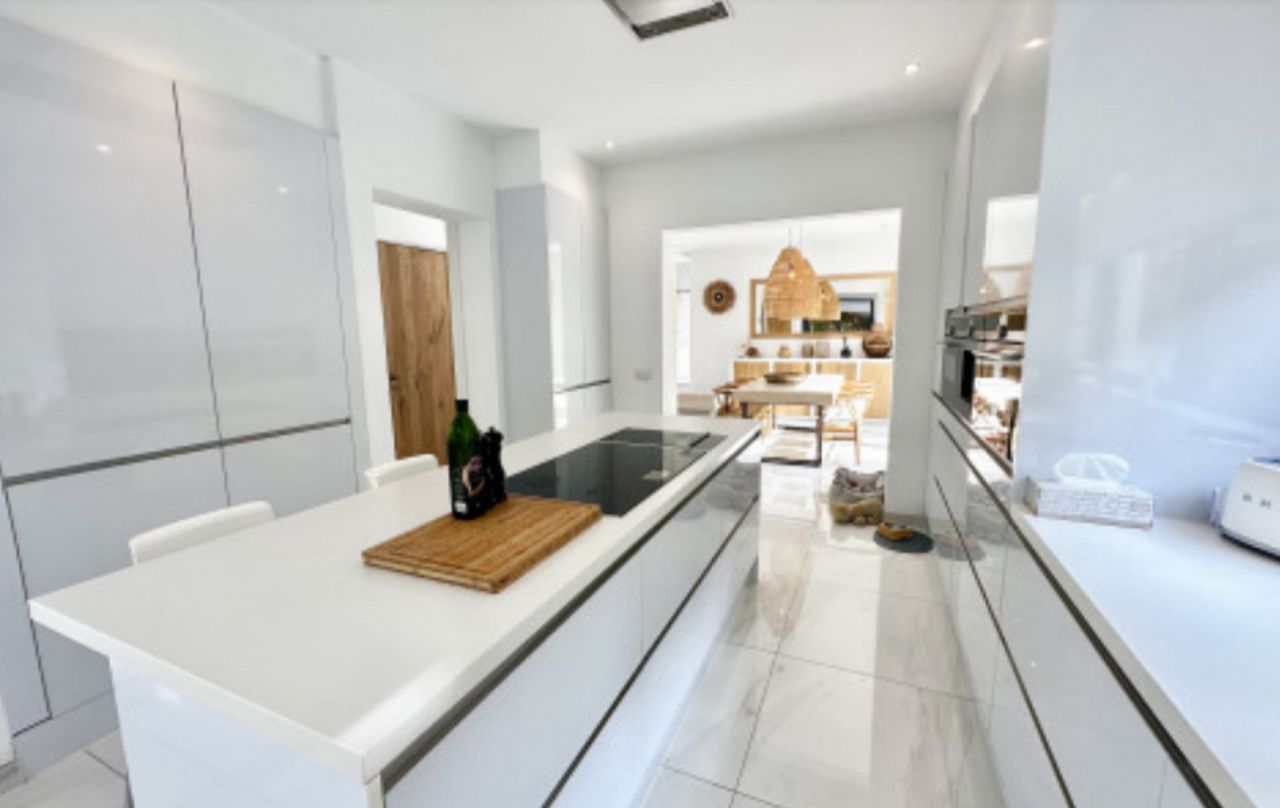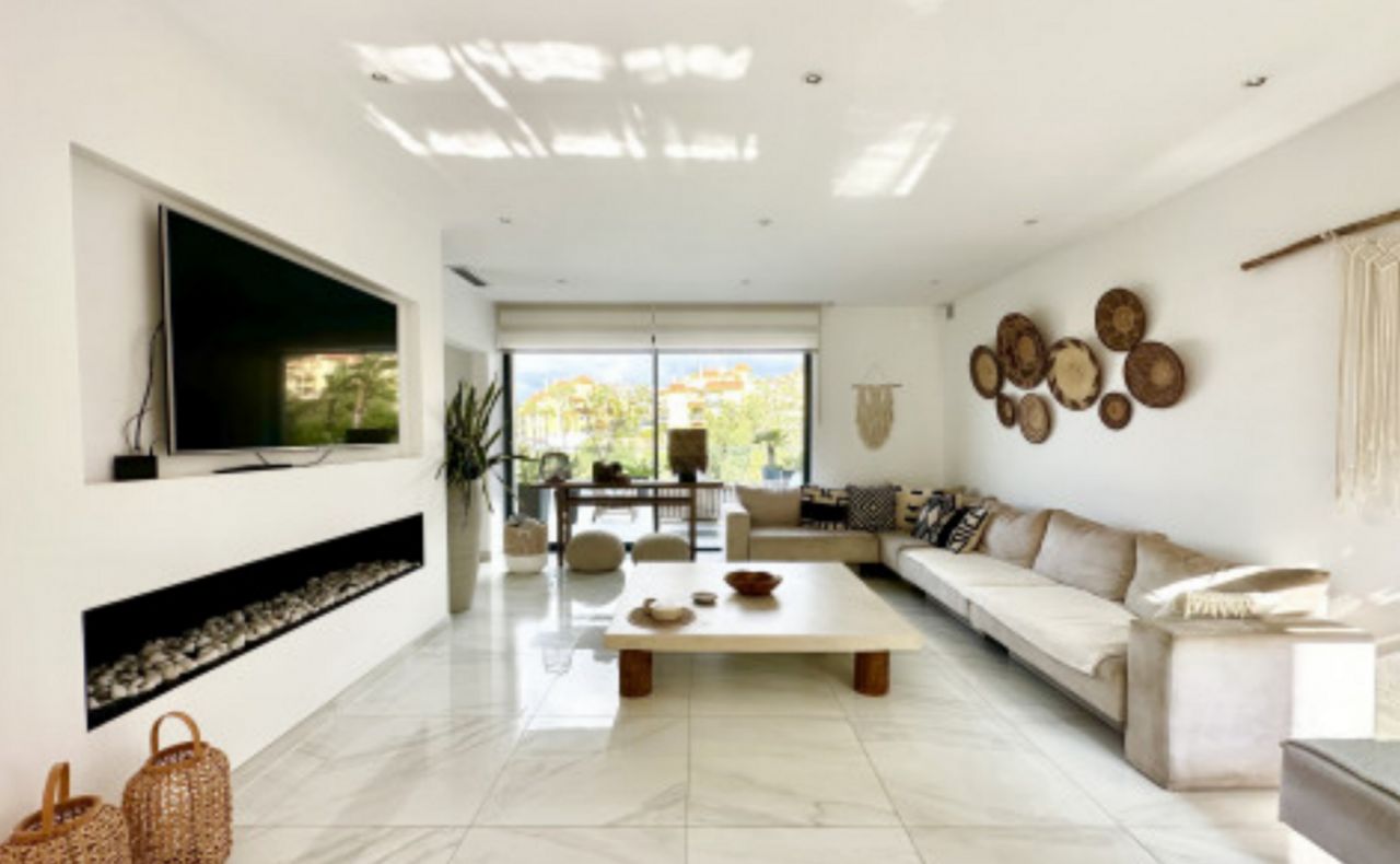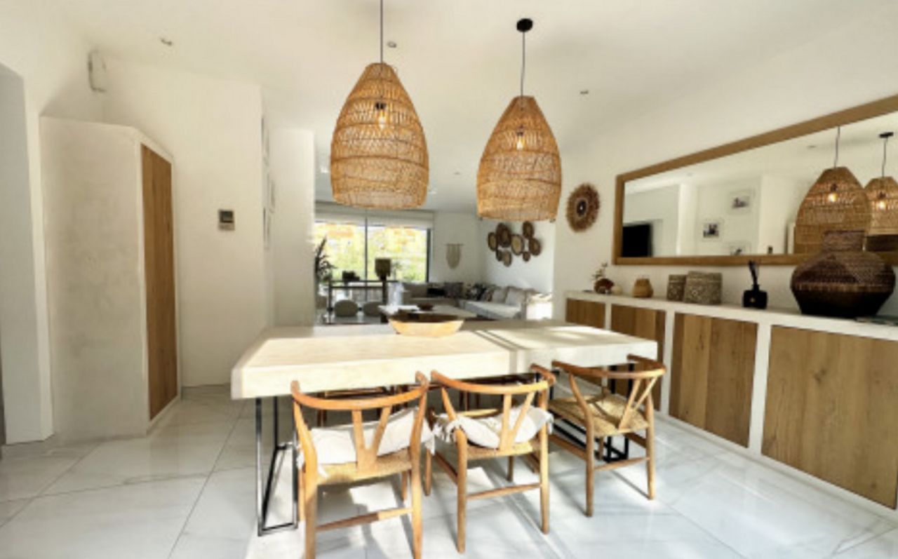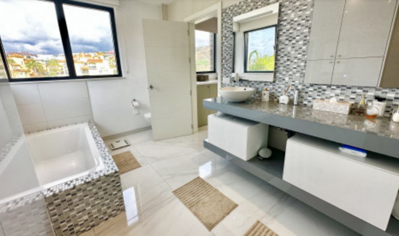 Tento luxusní moderní dům je skvěle zařízený podle nejvyšších standardů a vyznačuje se stylovým současným designem. Vila se nachází v Riviera del Sol, Mijas, nabízí bezkonkurenční pohodlí díky své poloze v blízkosti různých obchodů a pouhých 20 minut od letiště Malaga. Vila je díky své západní expozici zalita přirozeným světlem a prosvětluje každý kout jejích luxusních interiérů. Prostorný obývací pokoj a jídelna, zdobený útulným krbem, plynule přechází na terasu a nabízí úchvatný výhled na okolní krajinu. Moderní kuchyně je plně vybavena špičkovými spotřebiči, které uspokojí kulinářské potřeby i toho nejnáročnějšího šéfkuchaře. Vila má pět prostorných dvoulůžkových pokojů, každý s vlastní luxusní koupelnou. Na ty, kteří jsou zvyklí na zdraví a kondici, čeká speciálně vybavená posilovna, která poskytuje dokonalý prostor pro omlazení mysli i těla. Parkování je snadné díky velké garáži pro tři auta. K pohodlí přispívá výtah, který umožňuje snadný přístup do všech úrovní tohoto nádherného domu. Bezpečnost je prvořadá a vila je vybavena pokročilými alarmy a kamerovými bezpečnostními systémy, které poskytují klid jejím náročným obyvatelům. Tato luxusní současná vila skvěle kombinuje eleganci, komfort a pohodlí.