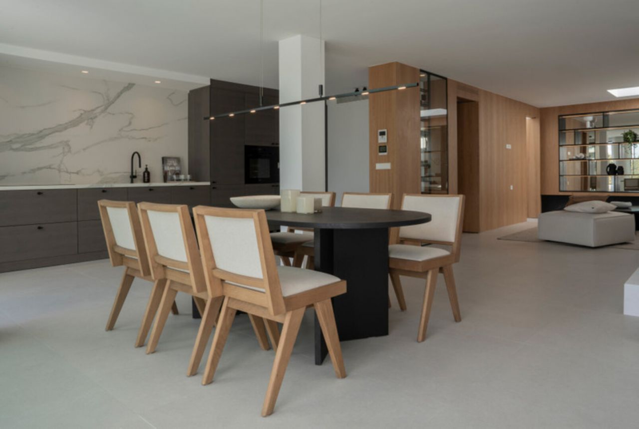 Tato vila je rozdělena na 2 podlaží a má obývací pokoj s otevřenou kuchyní na míru a spotřebiči Miele. Z jídelny je přímý vstup do letní kuchyně a bazénu, kde se můžete koupat po celý rok. Nový majitel bude mít možnost vybrat si mezi 5. ložnicí, kinosálem nebo tělocvičnou. Upozorňujeme, že za přidání kteréhokoli z těchto čísel se účtuje příplatek.