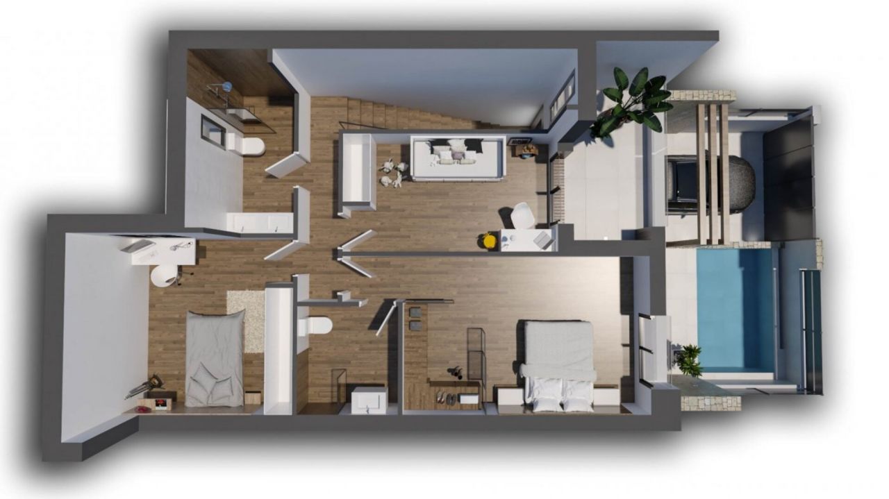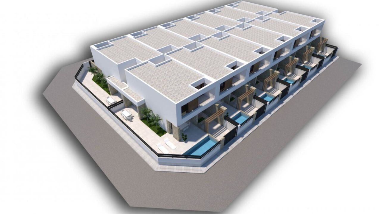 NOVÉ MĚSTSKÉ DOMY V DOLORES Nový rezidenční komplex řadových domů a dvojdomů v Dolores. Krásné řadové domy a dvojdomy o 2 patrech s otevřenou dispozicí kuchyně-jídelna, obývací pokoj s velkými okny a vstupem do zahrady, 3 ložnice, 3 koupelny, terasa, soukromá zahrada s bazénem a parkovacím místem Dolores je město, které se nachází v regionu Vega Baja del Segura na jihu provincie Alicante ve Španělsku. Městečko se nachází v srdci Guerta Segura, asi 10 km od nejbližších pláží La Marina a Guardamar. Komplex se nachází 30 minut jízdy od letiště Alicante a 1 hodinu jízdy od letiště Murcia - Corvera.