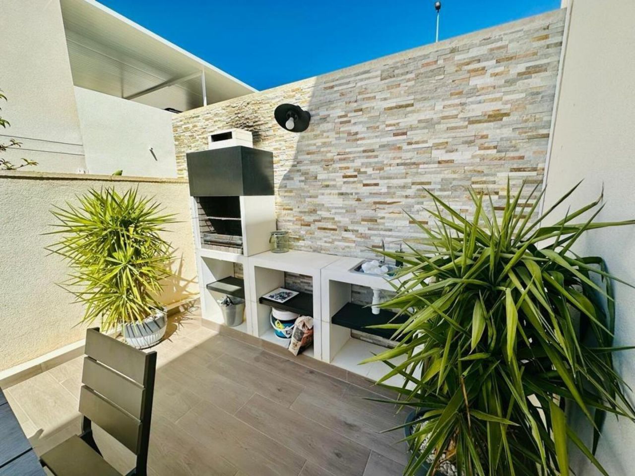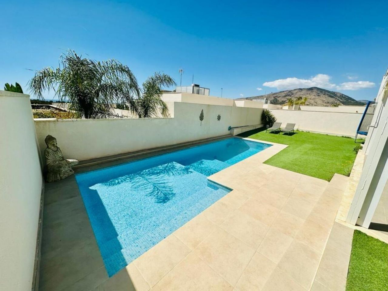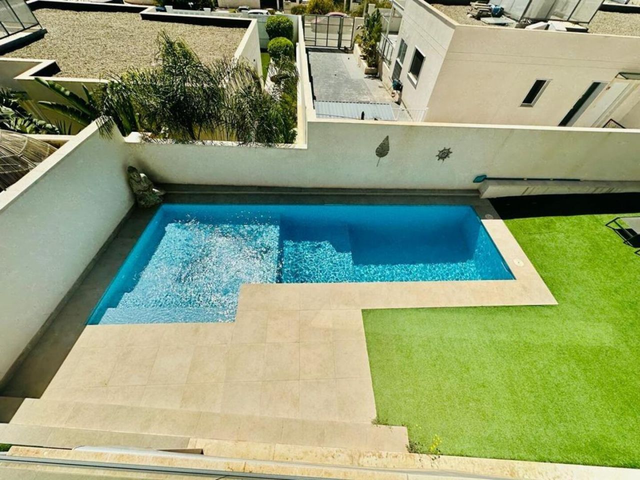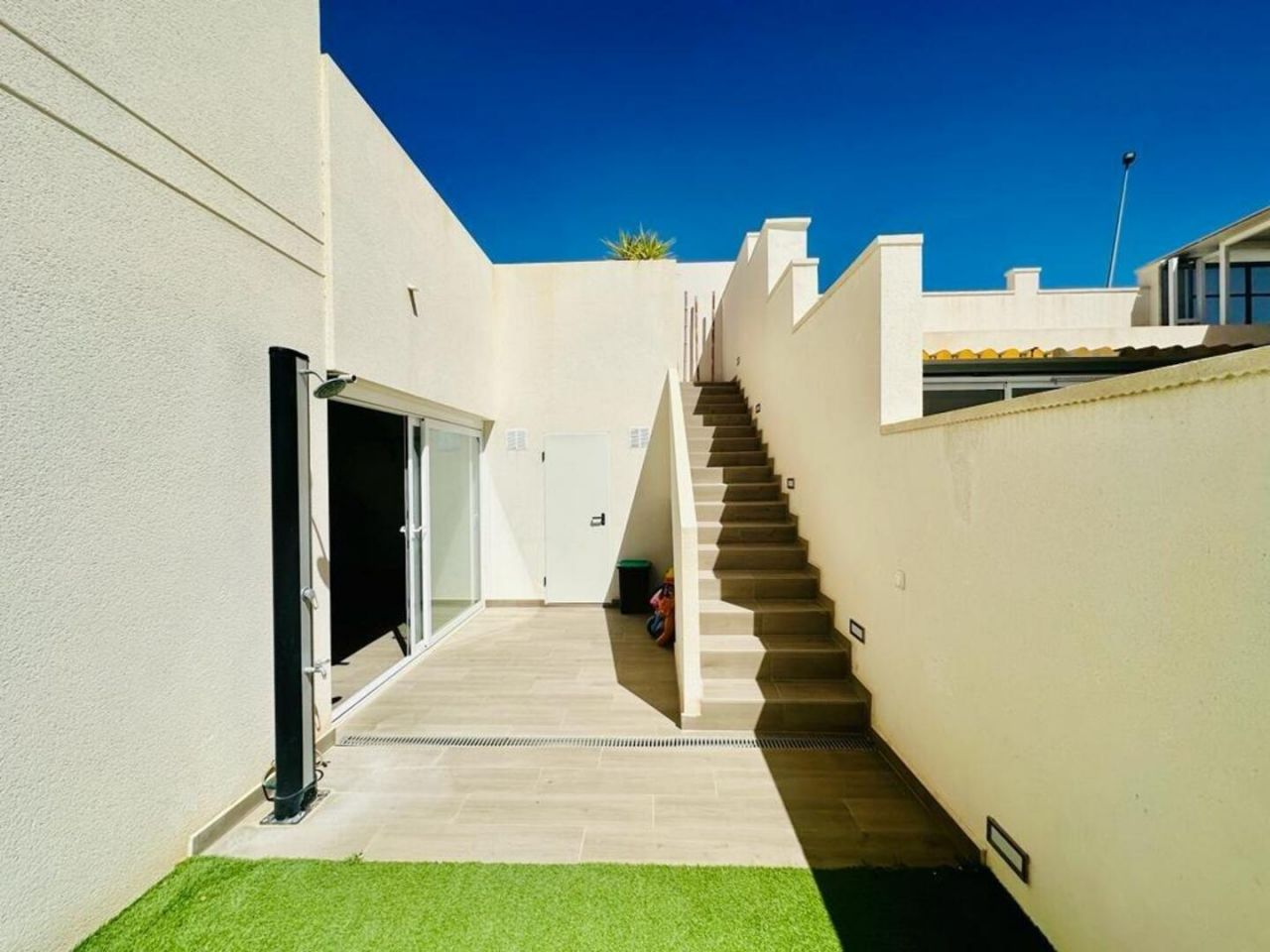 finestratTento nově postavený dům má avantgardní design, velký pozemek, soukromí a výhled na moře a hory Postaveno 150 m2 ve 2 podlažích: Přízemí: prostorný a světlý obývací pokoj se vstupem na krytou terasu, zahradu a bazén +. plně vybavená samostatná kuchyně (Architektura domu umožňuje odstranění příčky oddělující kuchyň od obývacího pokoje a vytvoření velkého, velmi moderního prostoru) + 1 plnohodnotná koupelna + 1 ložnice + multifunkční prostor (aktuálně hřiště/ tělocvična) + venkovní prostor s umělou zahradou pro aktivity venkovních sportů nebo pro děti na hraní uvnitř Velká zahrada, bazén a gril Horní patro: 3 ložnice + 2 koupelny. Hlavní ložnice s manželskou postelí, en-suite koupelnou a vstupem na krytou terasu, další dvoulůžkový pokoj a třetí jednolůžkový pokoj (aktuálně vybavený jako pracovna se vstupem na terasu). Všechny pokoje mají vestavěné skříně s vnitřní úpravou a velkou kapacitou. Nemovitost má parkování pro 2 auta a malou komoru. Pro zvýraznění jeho kvalit jsou laminátové podlahy v domě, porcelánová dlažba v koupelnách a kuchyni, studené teplo AACC potrubím odděleným rostlinami, markýzy na terasách, obvodové osvětlení, umělá zahrada, velký bazén s dětskou částí nebo chill-out , oplocení s termolamací a dvojitým sklem se vzduchovou komorou, pancéřové vstupní dveře, motorizované parkovací dveře, aerotermální energie pro samohybná děla Prodává se kompletně zařízený a s kuchyní vybavenou všemi elektrospotřebiči, ihned k nastěhování. Jižní orientace a výhled na moře a hory.