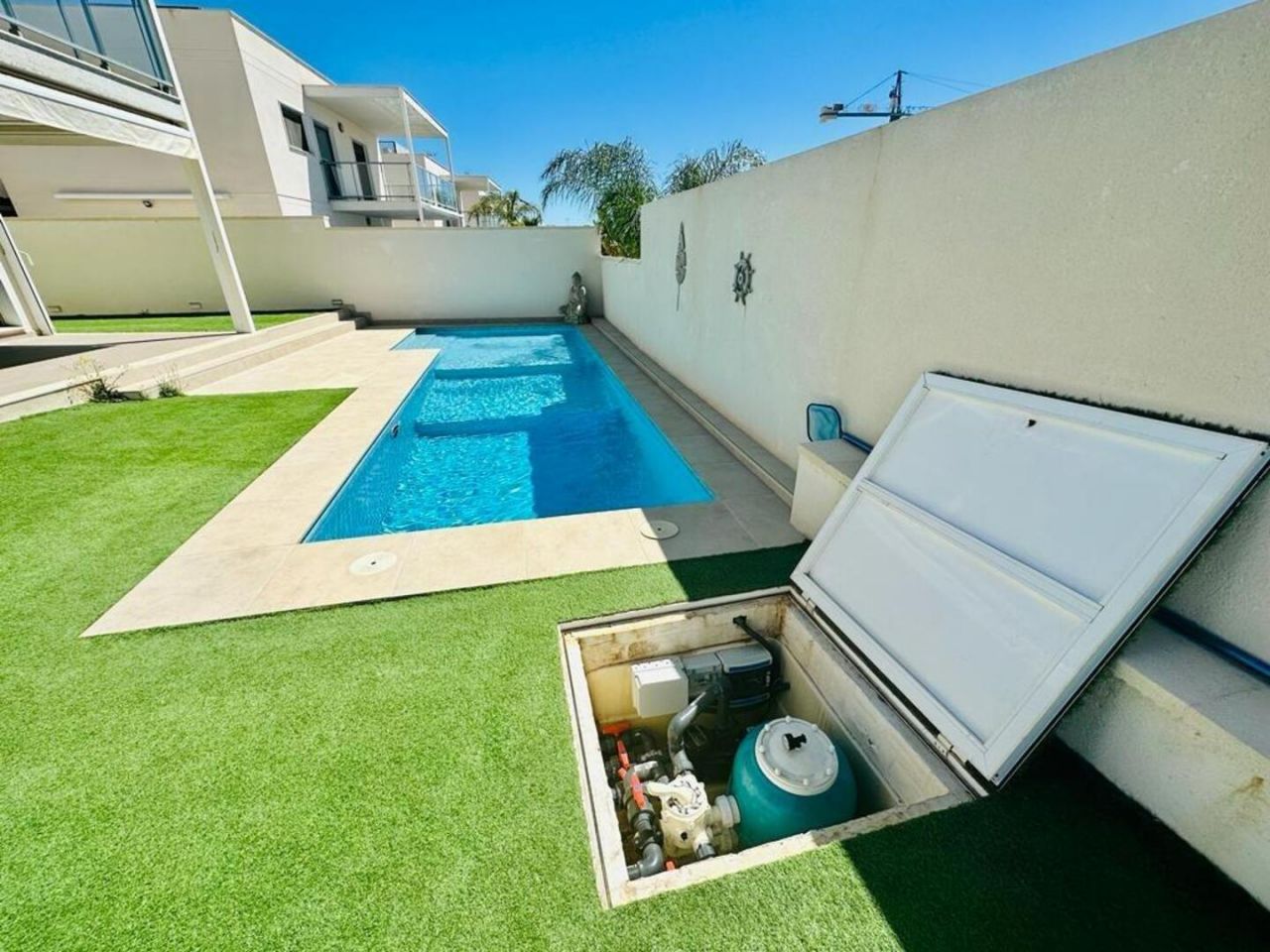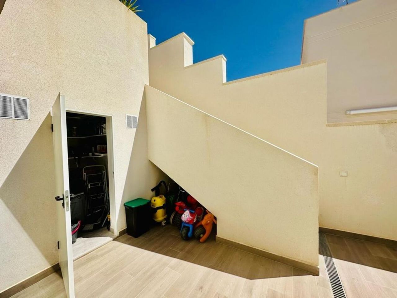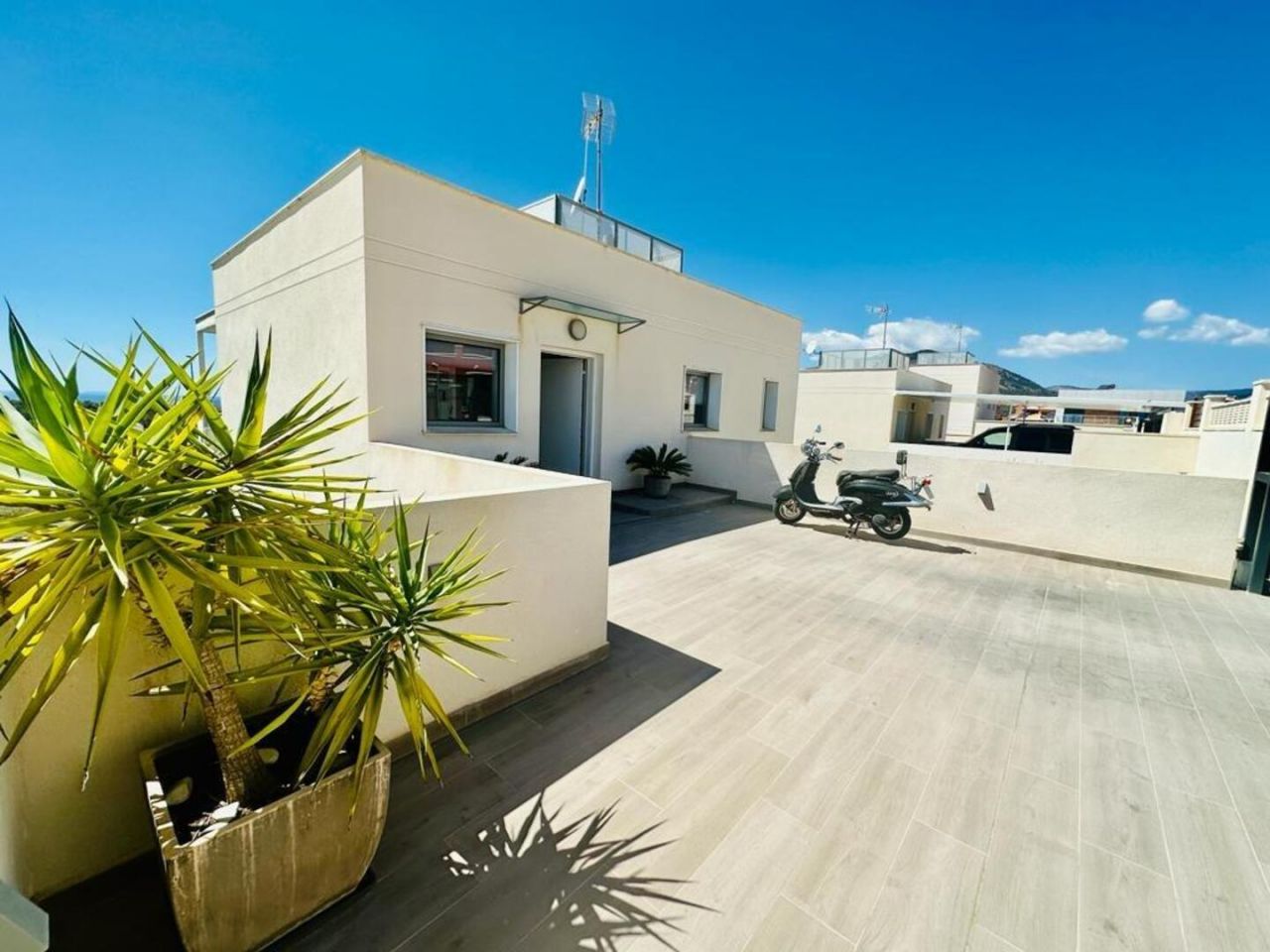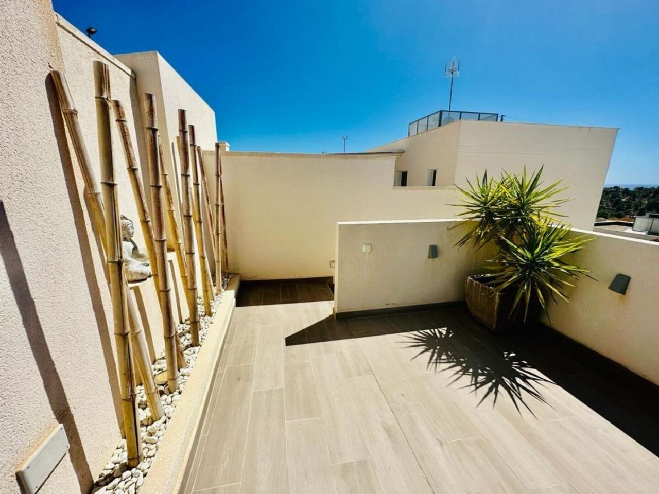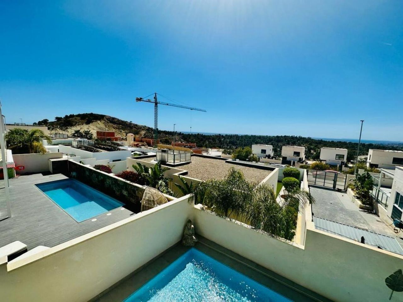 finestratTento nově postavený dům má avantgardní design, velký pozemek, soukromí a výhled na moře a hory Postaveno 150 m2 ve 2 podlažích: Přízemí: prostorný a světlý obývací pokoj se vstupem na krytou terasu, zahradu a bazén +. plně vybavená samostatná kuchyně (Architektura domu umožňuje odstranění příčky oddělující kuchyň od obývacího pokoje a vytvoření velkého, velmi moderního prostoru) + 1 plnohodnotná koupelna + 1 ložnice + multifunkční prostor (aktuálně hřiště/ tělocvična) + venkovní prostor s umělou zahradou pro aktivity venkovních sportů nebo pro děti na hraní uvnitř Velká zahrada, bazén a gril Horní patro: 3 ložnice + 2 koupelny. Hlavní ložnice s manželskou postelí, en-suite koupelnou a vstupem na krytou terasu, další dvoulůžkový pokoj a třetí jednolůžkový pokoj (aktuálně vybavený jako pracovna se vstupem na terasu). Všechny pokoje mají vestavěné skříně s vnitřní úpravou a velkou kapacitou. Nemovitost má parkování pro 2 auta a malou komoru. Pro zvýraznění jeho kvalit jsou laminátové podlahy v domě, porcelánová dlažba v koupelnách a kuchyni, studené teplo AACC potrubím odděleným rostlinami, markýzy na terasách, obvodové osvětlení, umělá zahrada, velký bazén s dětskou částí nebo chill-out , oplocení s termolamací a dvojitým sklem se vzduchovou komorou, pancéřové vstupní dveře, motorizované parkovací dveře, aerotermální energie pro samohybná děla Prodává se kompletně zařízený a s kuchyní vybavenou všemi elektrospotřebiči, ihned k nastěhování. Jižní orientace a výhled na moře a hory.