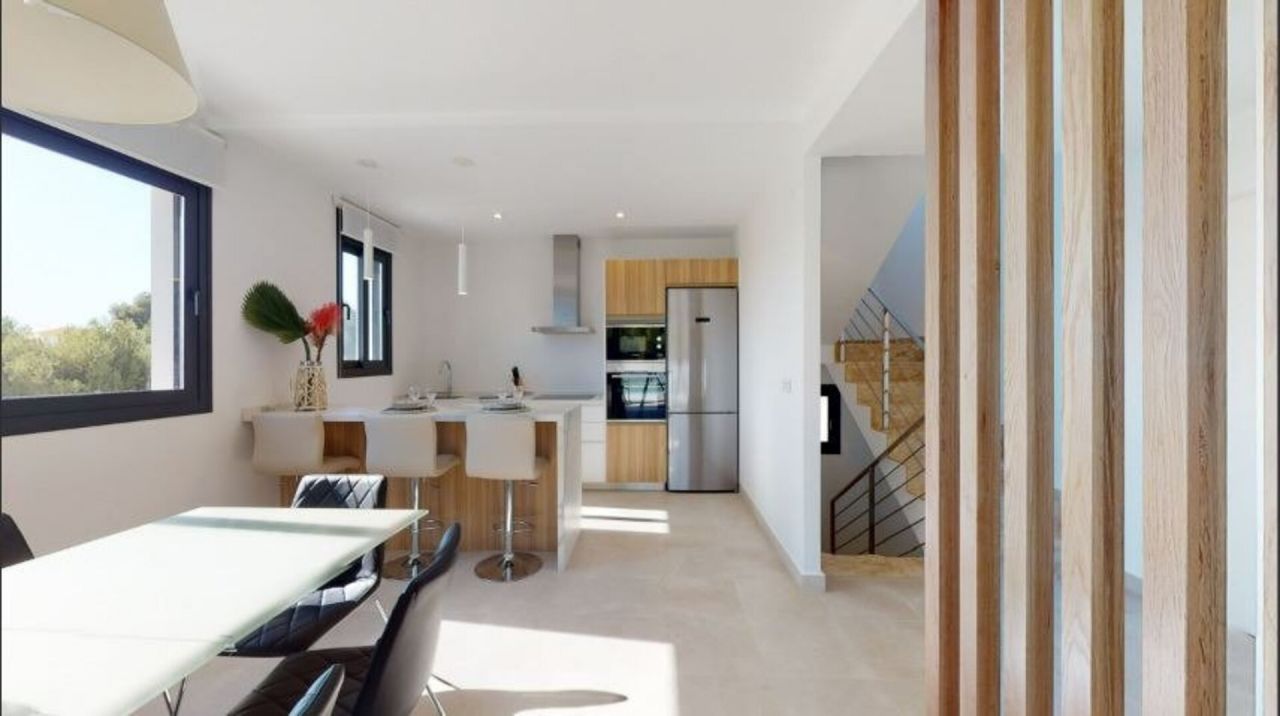NOVÉ VILY V LA NUCIA Nová výstavba pohodlných a luxusních vil s vlastním bazénem v La Nucia. Vily se skládají ze 3 velkých dvoulůžkových pokojů s vestavěnými skříněmi. Jeden pokoj je v prvním patře a další dva jsou ve druhém. Skládá se ze 4 kompletně dokončených koupelen se skleněnými zástěnami, porcelánovými toaletami a termostatickými sprchovými bateriemi, jedna v přízemí, jedna v garáži a další dvě koupelny v pokojích ve druhém patře. Světlý obývací pokoj s velkými okny, která umožňují vstup do soukromé části s bazénem a umělou trávou, kde si můžete užívat a relaxovat. Plně vybavená americká kuchyně s nástěnnými a spodními skříňkami, špičkovými spotřebiči a ostrůvkem se spodními skříňkami, pracovními deskami SILESTONE s integrovaným nerezovým dřezem a designovou nerezovou digestoří. Instalace vzduchotechnického a topného systému prostřednictvím vzduchovodů AEROTHERMAL se 2 nezávislými stroji (dvouzónová). Komfort a design PORCELANOSA zajišťují exkluzivní povrchové úpravy, jako jsou plovoucí podlahy, podlahy z přírodního kamene a vysoce kvalitní porcelánové obklady. Celá vila má vnitřní i venkovní LED osvětlení a elektrické rolety. Bydlení se nachází v exkluzivní lokalitě s vysokou kvalitou a veškerou občanskou vybaveností; terasa, solárium, soukromá garáž pro 2 auta, zahradní plochy, urbanizace, bazén a vše, co si dokážete představit. Ekologické ubytování je vybaveno solárními panely pro přípravu teplé vody, LED osvětlením a TEPELNĚ-AKUSTICKOU izolací. La Nucia je obec v regionu Marina Baixa, Alicante. Sousedí s obcemi Altea, Callosa d'En Sarria, Benidorm, Polop a L'Alfaz del Pi. La Nucia se nachází v ovocném údolí mezi Benidormem a Callosa d'En Sarria, 3 km od pobřeží Altea. Městské centrum se nachází na ostrohu s výhledem na Středozemní moře, 51 km severně od Alicante a 8 km severně od Benidormu. VZDÁLENOST: - Přístup z dálnice A. - 5 minut od Terra Mitica. - 5 minut od školy ELIANS. - 5 minut od supermarketů, kaváren a všech typů služeb. - 10 minut od pláže Benidorm. - 15 minut od Playa del Albir. - 20 minut od hradu Guadalest. - 40 km od letiště Alicante-Elche.