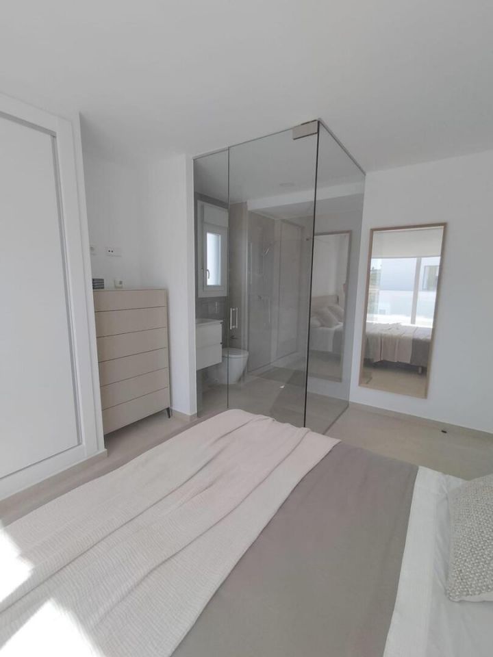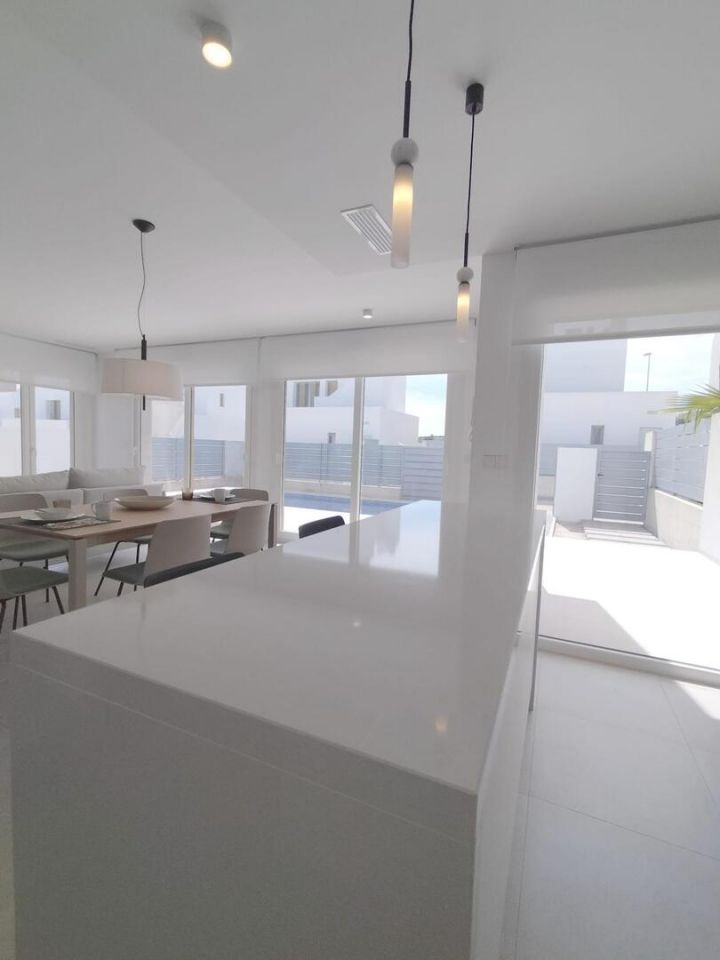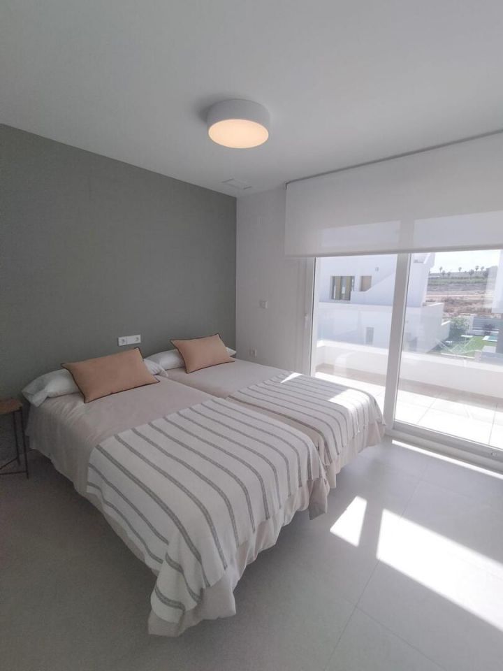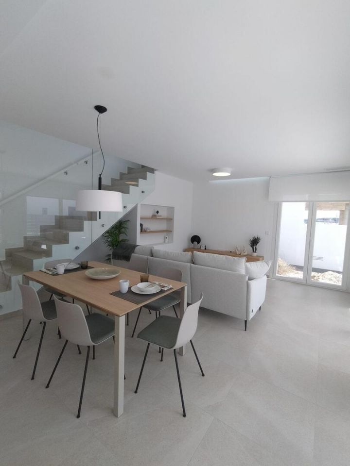 STŘEDOMOŘSKÁ VILA NA GOLFOVÉM HŘIŠTĚ Fantastická vila se zastavěnou plochou 140 m2, dispozičně rozdělena: - Přízemí: obývací pokoj-jídelna-kuchyň 35 m2, 1 ložnice, 1 koupelna, 1 komora a 1 terasa 16,60 m2 . - Horní patro: 2 ložnice, 2 koupelny, 1 terasa 11,10 m2. Můžete si užít vynikající sportovní zařízení, jako je paddle tenis, bowlingové dráhy a golfová hřiště. Komplex má veškerou místní občanskou vybavenost, jako jsou obchody, bary, restaurace a klub vzdálený méně než 5 minut chůze. V blízkosti měst San Miguel de Salinas a Los Montesinos, která jsou vzdálená pět minut jízdy, zatímco pláže Guardamar s modrou vlajkou jsou vzdálené pouhých 15 minut jízdy. Letiště Alicante je 35 minut jízdy a letiště Murcia San Javier 30 minut jízdy.