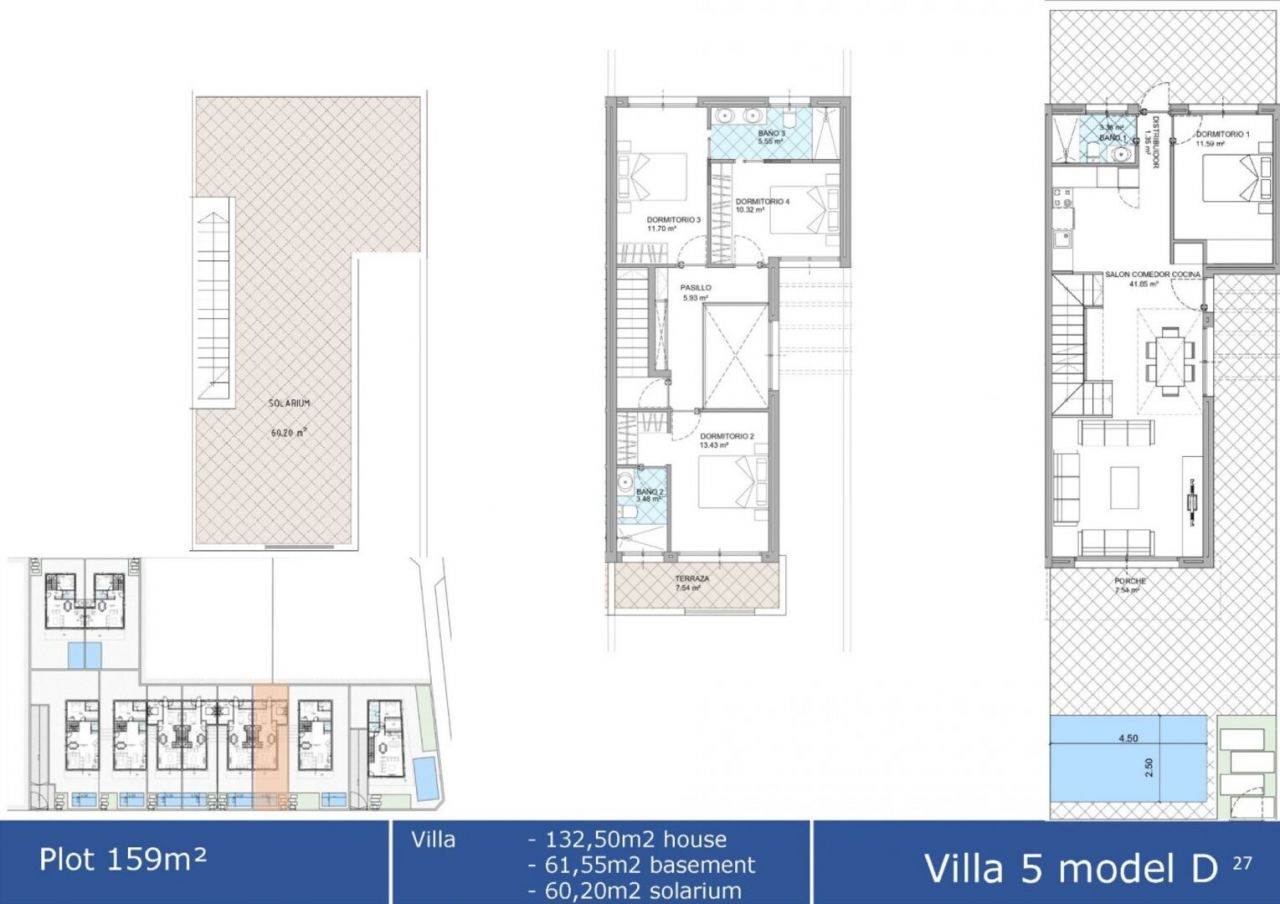 pilar-de-la-horadadaNOVÝ REZIDENČNÍ KOMPLEX V TORRE DE LA HORADADA Nový rezidenční komplex dvojvilin a městských domů, který se nachází pouhých 500 m od pláže v Torre de la Horadada. Řadové domy jsou rozděleny na přízemí, druhé patro, solárium a suterén. Městský dům má 3 ložnice, 3 koupelny, otevřenou kuchyni s obývacím pokojem, zahradu s vlastním bazénem a parkovací místo. Řadové domy se nacházejí pouhých 500 metrů od pláže a 200 metrů od nákupního centra Plaza Nueva. Torre de la Horadada se nachází jižně od Alicante na krásném přímořském místě. Krásné pláže Torre de la Horadada a Mil Palmeras mají jemný písek a krásnou promenádu. Je zde spousta restaurací, barů a obchodů, stejně jako vodní sporty, potápění a šnorchlování. 40 minut jízdy od letišť Alicante a Murcias Corvera s velkými komerčními nákupními centry a několika golfovými hřišti.