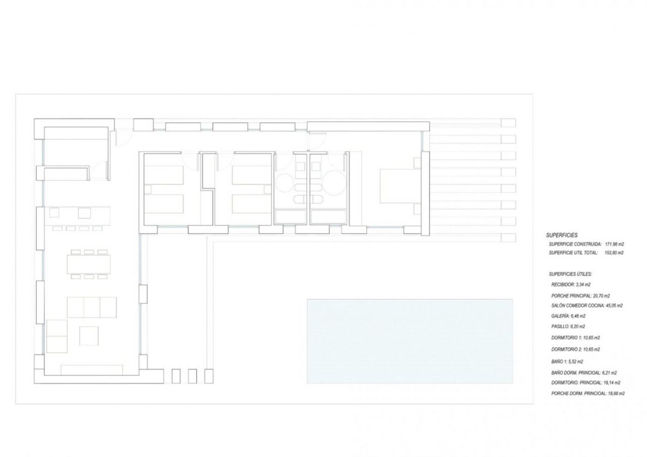 pinosoNOVÁ VILA V PINOSO Nová luxusní vila v Pinoso, provincie Alicante. Luxusní vila se 3 ložnicemi a 2 koupelnami, otevřenou kuchyní s jídelnou a obývací částí, soukromým bazénem a krytou terasou. Vila byla navržena s velkými okny, která přinášejí světlo, a pokoje s otevřeným plánem umožňují inovativní další prostor. Vynikající kvalita konstrukce s moderním vybavením, stejně jako působivá poloha, příkladná infrastruktura s nedotčenými, panoramatickými výhledy na hory a údolí plné mandlovníků a olivovníků a vinic produkujících místní víno, dělají z této oblasti moderní oázu pohody a okolní příroda je nádherná v hojnosti. Máte na výběr ze všech kuchyňských a koupelnových obkladů a podlah a dokonce i ze stylu vaší kuchyně, abyste si ji vyrobili a přizpůsobili design uvnitř jen pro vás Stavební firma Architect s vámi bude spolupracovat a v případě potřeby poradí se všemi požadovanými změnami dělat. V případě potřeby můžete zvětšit velikost této vily, můžeme vám poskytnout odhad. Zde můžete bydlet volně a mít veškeré každodenní vybavení pouhých 10 minut odtud, můžete cítit vůni divokých bylin a relaxovat ve své vlastní středomořské zahradní oáze. Nové projekty mimořádného designu a vynikající kvality se staví v LAS COLINAS, který se nachází v přírodním parku s pohádkovými výhledy na hory a mandlové sady, ale zároveň kousek od místní vesnice a pouhých 6 minut jízdy od Pinoso, nedaleko obce Úbeda, která se nachází na jihu Costa Blanca.