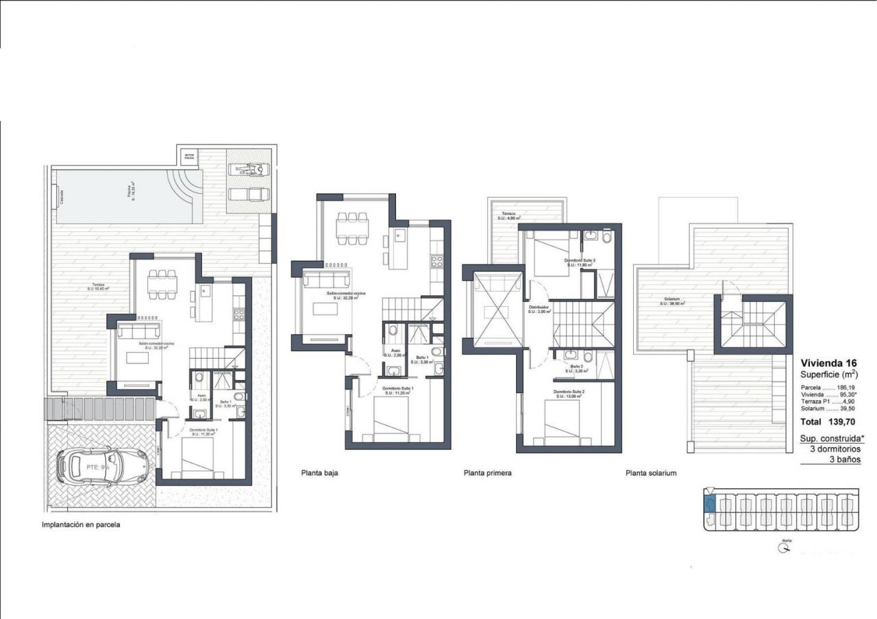 NOVÉ VILY V ROJALES Nový projekt moderních apartmánů a vil s vlastním bazénem v Rojales Moderní nemovitost má 3 ložnice, 2 koupelny, toaletu pro hosty, otevřenou kuchyni s obývacím prostorem, vestavěné skříně, solárium, a. soukromá zahrada s bazénem a off-road parkovacím stáním Prostory jsou navrženy tak, aby poskytovaly soukromí a pohodlí, s velkými zahradami, které vám umožní užívat si venku v naprostém klidu Moderní design s prostornými ložnicemi a koupelnami vybavenými vysoce kvalitními povrchy . Velké solárium a terasa: Prostorné a dobře propojené prostory pro vychutnání středomořského klimatu a panoramatických výhledů Vysoké standardy povrchových úprav a detailů: Materiály nejvyšší kvality a designu s důrazem na detail, který nabízí elegantní a přívětivou atmosféru a pohodlí srdce Středozemního moře, nacházející se v Rojales, Alicante, je vysněnou destinací pro ty, kteří hledají kvalitu života, klid a přístup k prvotřídním službám. Tato exkluzivní rezidenční čtvrť nabízí dokonalou kombinaci modernosti a přírody, díky čemuž je ideálním místem k životu. Strategicky umístěné v dobře rozvinuté a vysoce žádané oblasti poskytuje přístup ke kompletní městské infrastruktuře při zachování přirozeného a klidného prostředí. Rojales se nachází 15 minut jízdy od některých z nejkrásnějších pláží Guardamar del Segura a Torrevieja. Blízkost těchto pláží nabízí řadu výhod a benefitů, díky kterým je zde bydlení jedinečným zážitkem. Kromě každodenního vyžití nabízí bydlení v blízkosti těchto pláží příležitosti pro aktivní a zdravý životní styl. Vodní sporty jako surfování, paddle surfing a potápění jsou snadno dostupné, stejně jako procházky podél pobřeží nebo turistické stezky v nedalekých dunách a přírodních parcích Hlavní letiště: - Letiště Alicante-Elche (ALC): Nachází se 38 km Letiště Murcia-Corvera (RMU): Nachází se asi 65 km a autem se na něj dostanete za 50 minut. Silniční síť: - Dálnice AP-7 a státní silnice N-332 poskytují rychlý a snadný přístup do hlavních měst a turistických míst v regionu. Veřejná doprava: - V oblasti jezdí pravidelné autobusy spojující Ciudad Quesada s okolními městy a hlavními atrakcemi.