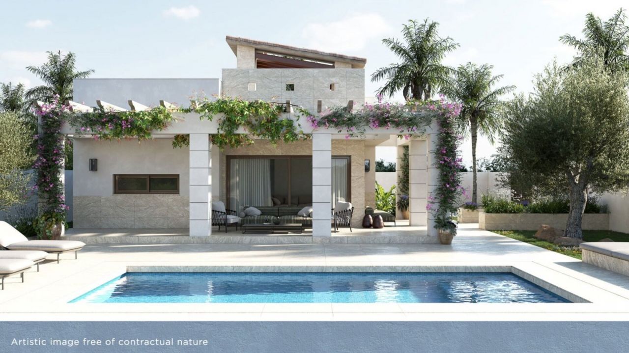 NOVÁ VILA V ROJALES Krásná nová vila v Rojales. Vila je postavena v 1. patře, má 3 ložnice a 2 koupelny, otevřenou dispozici kuchyně s obývacím pokojem, vestavěné skříně, privátní solárium, soukromou zahradu s bazénem a parkovací stání. Vila se nachází jen 2 minuty od golfového klubu La Marquesa, 5 minut od centra města a 10 minut autem od nádherných pláží Guardamar del Segura. Rojales je krásná vesnice se všemi službami, jako jsou supermarkety, lékárny, banky, restaurace a přírodní park v těsné blízkosti vil. V blízkosti je několik golfových hřišť a také vodní parky v sousedních Rojales a Torrevieja. Na letiště Alicante a Murcia dojedete za 45 minut.