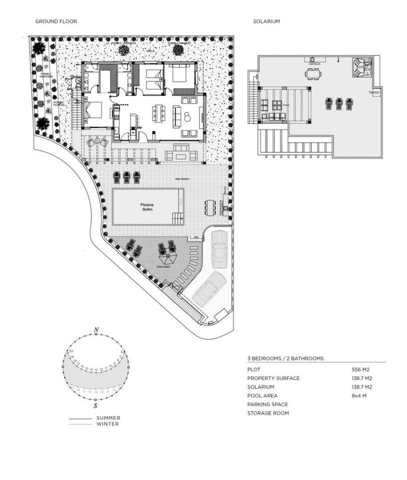 VILA V ROJALES Nádherná vila v moderním stylu se soukromou zahradou a soláriem v urbanizaci Doña Pepa, Rojales. Vila je postavena v 1. patře, má 3 ložnice a 2 koupelny, otevřenou kuchyni s obývacím prostorem, vestavěné skříně, privátní solárium, soukromou zahradu s bazénem a parkovací stání. Vila se nachází jen 2 minuty od golfového klubu La Marquesa, 5 minut od centra města a 10 minut autem od nádherných pláží Guardamar del Segura. Rojales je krásná vesnice se všemi službami, jako jsou supermarkety, lékárny, banky, restaurace a přírodní park v těsné blízkosti vil. V blízkosti je několik golfových hřišť a také vodní parky v sousedních Rojales a Torrevieja. Na letiště Alicante a Murcia dojedete za 45 minut.