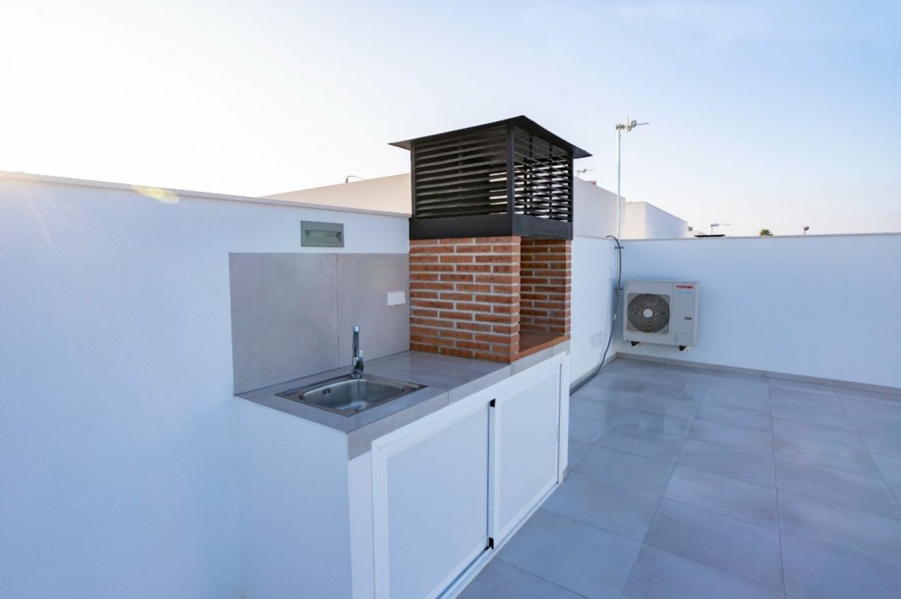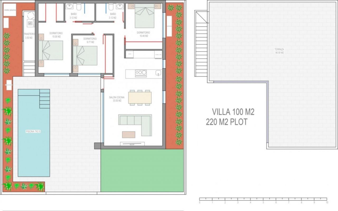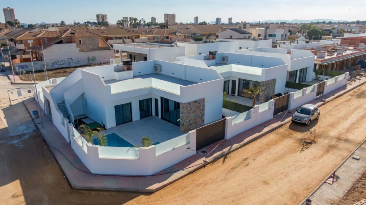 santiago-de-la-riberaNOVÁ JEDNOPAŽOVÁ VILA V SANTIAGO DE LA RIBERA Krásné jednopodlažní vily se 3 ložnicemi a 2 koupelnami se nacházejí 900 metrů od pláží Santiaga de la Ribera. Všechny mají světlý obývací pokoj s moderní otevřenou kuchyní a posuvnými okny navazujícími na přední terasu a soukromý bazén. Ve všech ložnicích jsou vestavěné skříně. K dispozici je také velké solárium, kde se můžete opalovat po celý rok, vlastní parkovací místo na pozemku a zahrada. Nachází se v Santiagu De La Ribera a pouhých 900 m od moře, tento dům je ideálním místem, kde si můžete užít fantastické klima a nádhernou promenádu. Zde najdete veškerou občanskou vybavenost v docházkové vzdálenosti, jako je mnoho dobrých restaurací, vynikající tapas bary, kavárny a supermarkety. V docházkové vzdálenosti jsou také bezplatné bahenní lázně Lo Pagan. Tato oblast nabízí různé vodní sporty a je jen 20 minut jízdy od bulváru La Zenia a města Cartagena. Letiště Murcia-Corvera je vzdáleno 30 minut jízdy. Letiště Alicante je vzdáleno 50 minut jízdy.