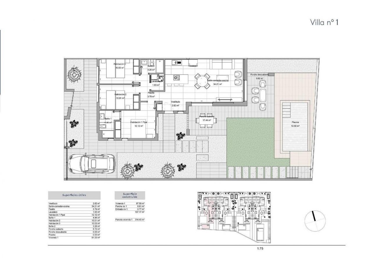 NOVÉ VILY V SANTIAGO DE LA RIBERA Nový komplex moderních vil v Santiagu de la Ribera. Vily jsou postaveny na pozemcích od 300 m2 a skládají se ze 3 ložnic a 2 koupelen, rozmístěných na jednom patře, s velkými verandami, zahradou a soukromým bazénem. Hlavní obytná část má otevřený plán obývacího/jídelního a kuchyňského koutu s velkými okny, která umožňují přístup do venkovního prostoru. V tomto patře se nachází ložnice s en-suite koupelnou, dvě ložnice s přímým vstupem na zahradu, koupelna a prádelna. Každý prostor zve svou kompozicí, dekorací a osvětlením k jedinečnému zážitku. Moderní a avantgardní styl sdílí s minimalismem čisté a rovné linie, stejně jako široké, čisté a průhledné prostory, které vytvářejí atmosféru pohostinnosti. Vily se vyznačují prostornými, moderními a flexibilními prostory, stejně jako nejrafinovanějším výběrem materiálů a povrchových úprav a jejich energetická účinnost jsou jen některé z výjimečných prvků, které vám umožní užívat si nádherné středomořské klima po celý rok. Santiago má moderní vzhled, i když si zachovává atmosféru „rybářské vesnice“. Je zde velmi krásná promenáda, podél které rostou majestátní palmy, a 2 kilometry nádherných písečných pláží. Odtud se můžete vydat lodí přes klidné vody Mar Menor do pruhu La Manga na protějším břehu. Hlavní nákupní oblast je ve městě San Javier, ale v úzkých uličkách se můžete potulovat po několika obchodech, zkuste je navštívit ve středu ráno, kdy je velký pouliční trh. Vily jsou v docházkové vzdálenosti od obchodů, barů, restaurací, nákupního centra Dos Mares a fantastických pláží Mar Menor a 20 minut od oblíbeného bulváru Zenia - vše na dosah! Jen 30 minut jízdy od města Cartagena a nového mezinárodního letiště Murcia.