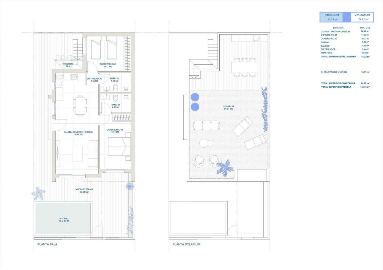 NOVÉ VILY V ROLDAN Nové vily v Roldan, Torre Pacheco. Moderní vily postavené na jednom patře mají 2 nebo 3 ložnice, 2 koupelny, otevřenou kuchyni s obývacím pokojem, vestavěné skříně, privátní solárium. Všechny vily mají vlastní zahradu s bazénem a parkovacím místem. Samotný Roldan je tradiční město s veškerou potřebnou občanskou vybaveností včetně supermarketů, restaurací, barů, kliniky, lékárny, policejní stanice, čerpací stanice, mechaniků, zubařů, lékařů a mnoho dalšího. Nedaleká golfová střediska La Torre a Terrazas jsou snadno dostupná, na letiště Corvera dojedete autem za 15 minut a na pláže Mar Menor za pouhých 20 minut.