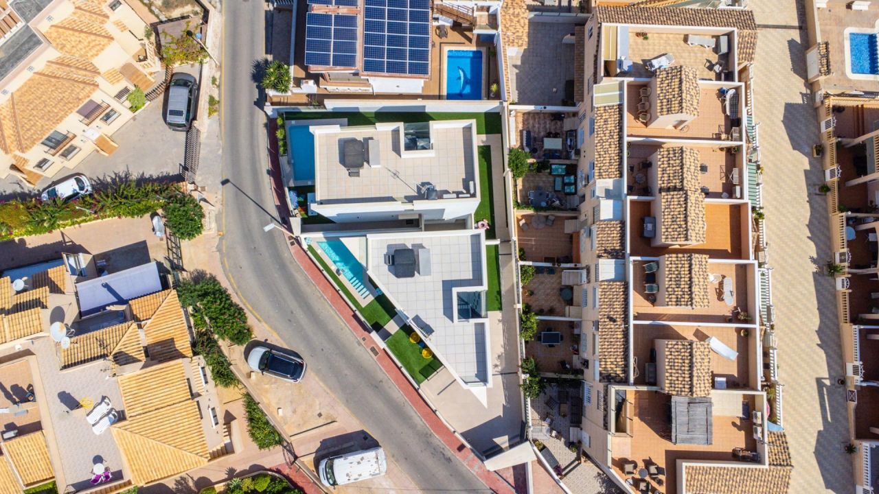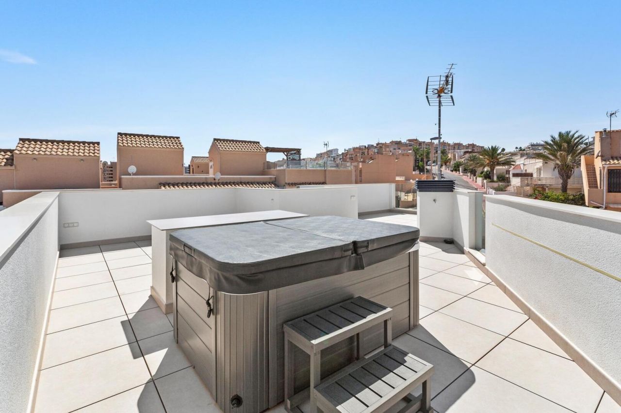 Vila na prodej v Torrevieja v oblasti La Mata. Celková plocha 230,00 m2, pozemek 154 m2, vila z roku 2023, sestává ze 6 pokojů (5 ložnic, 1 obývací pokoj), 4 koupelen. K dispozici jsou vestavěné skříně, jacuzzi, solárium a výhled na moře.