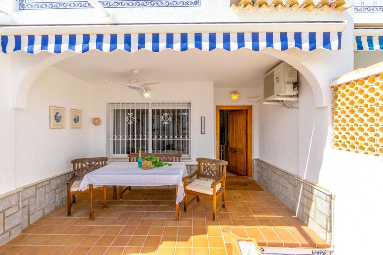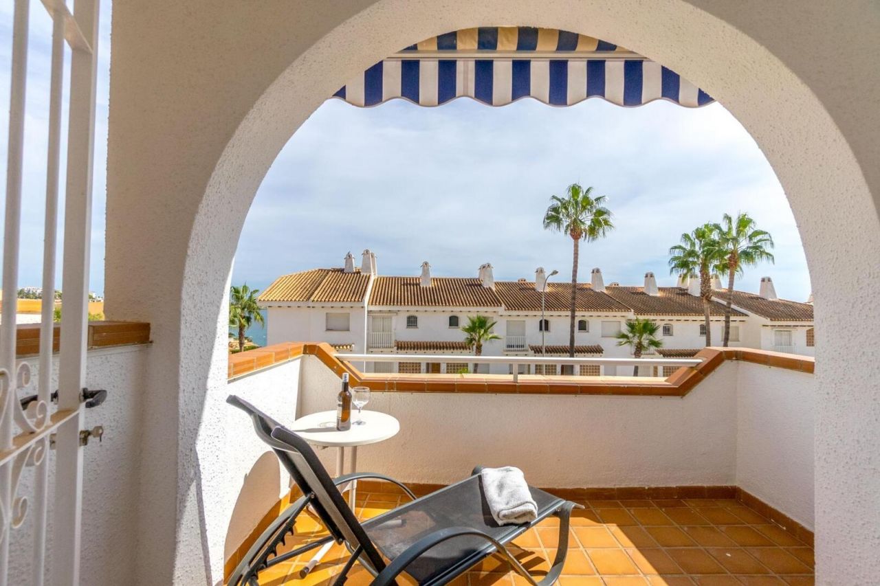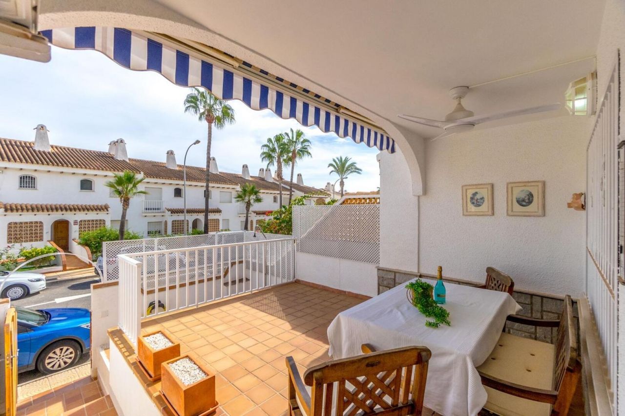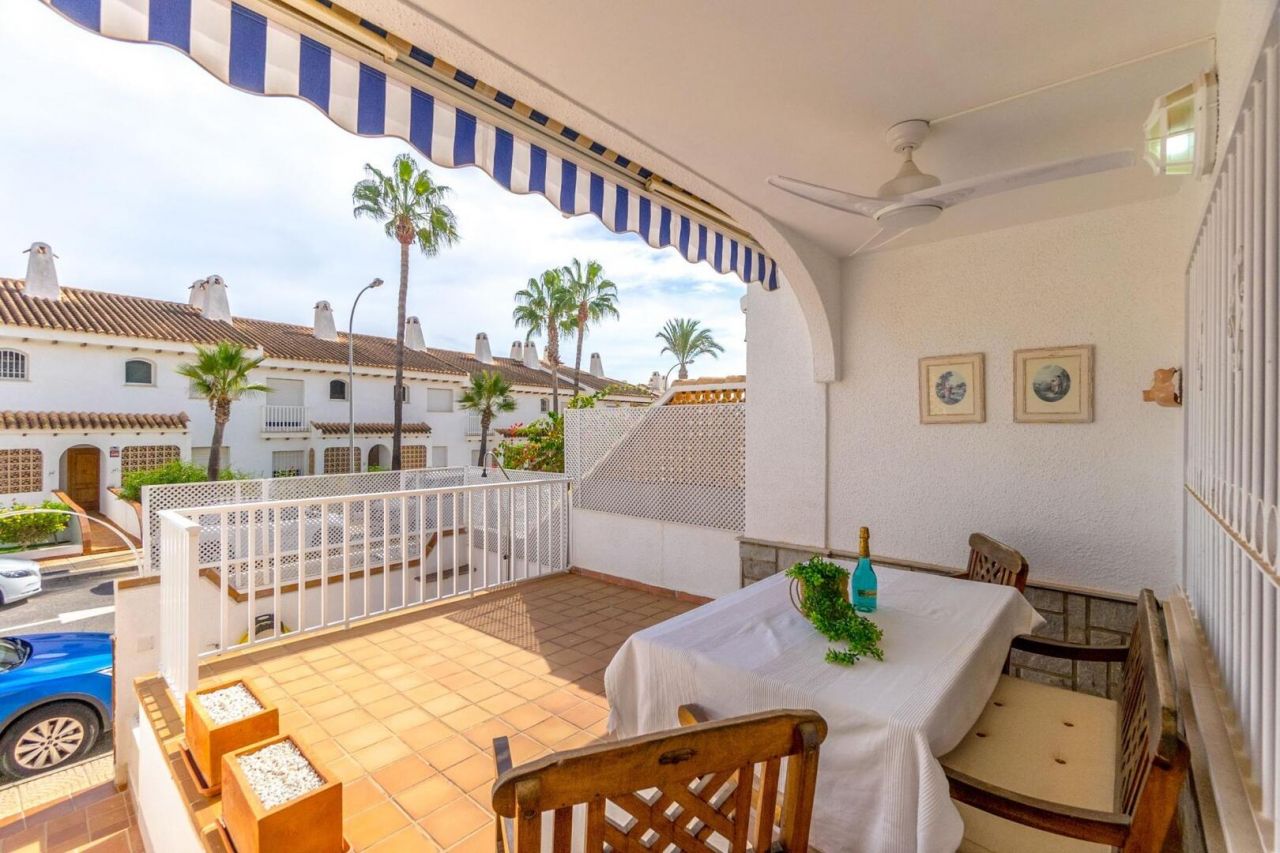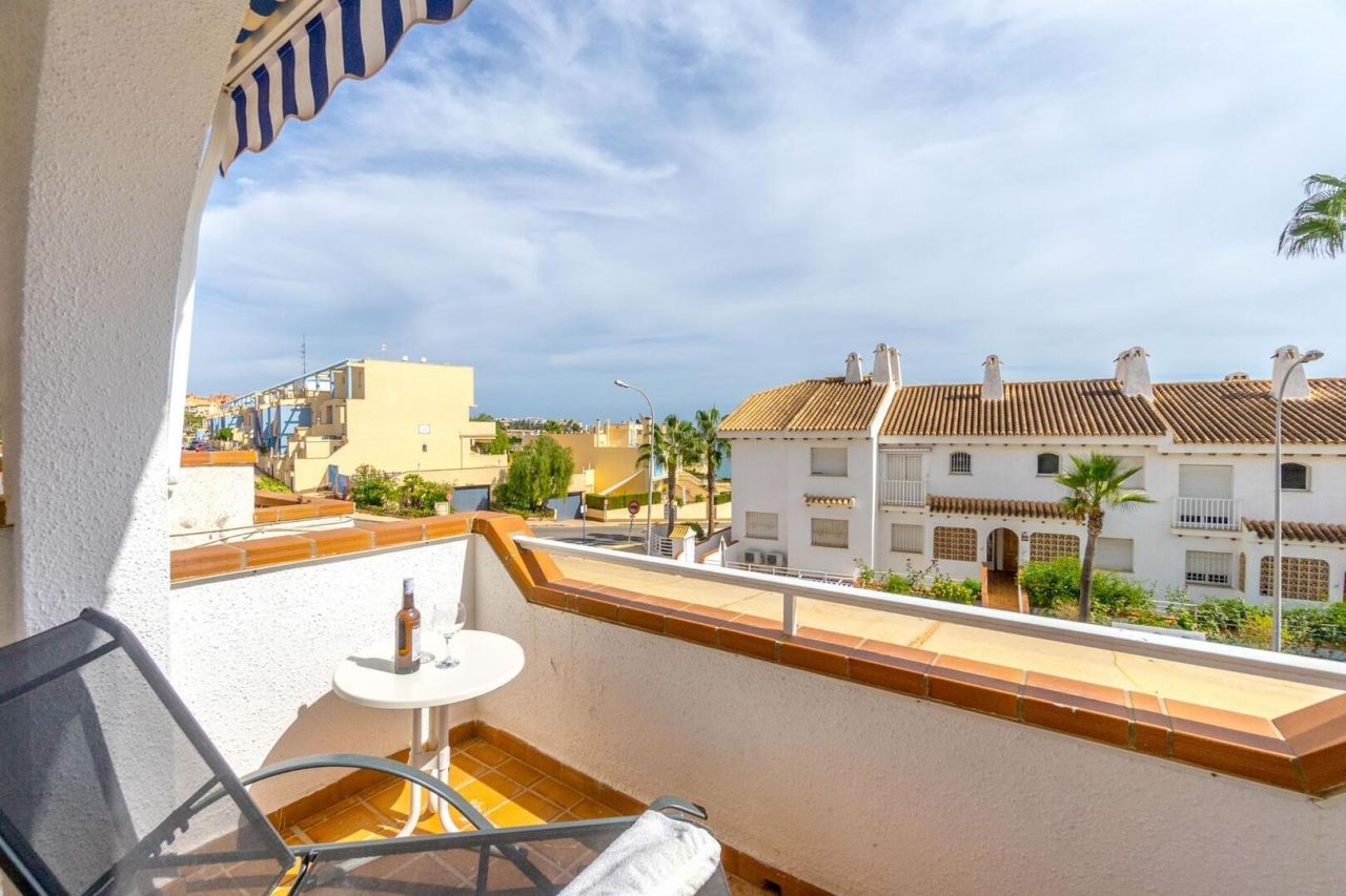 Duplex ve středomořském stylu v Aguamarina (Dehesa de Campoamor). Jihovýchodní orientace a pouhých 100 metrů od pláže. Skládá se ze 3 velkých ložnic, 2 kompletních koupelen, verandy, samostatné kuchyně a dvorku dlouhého více než 12 metrů. Hlavní ložnice s přímým vstupem na terasu. Přístup z domu na 26m2 uzavřené soukromé parkoviště. Klimatizace a krb. Rezidenční s velkými zelenými plochami a bazény. Přímý přístup na pláž a promenádu. Jen 100 metrů od supermarketu, nákupního centra atd.