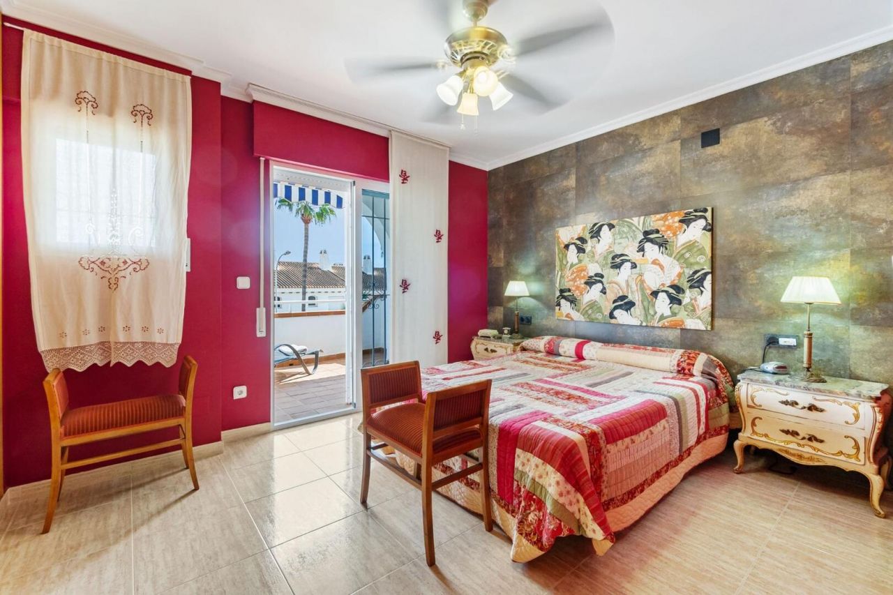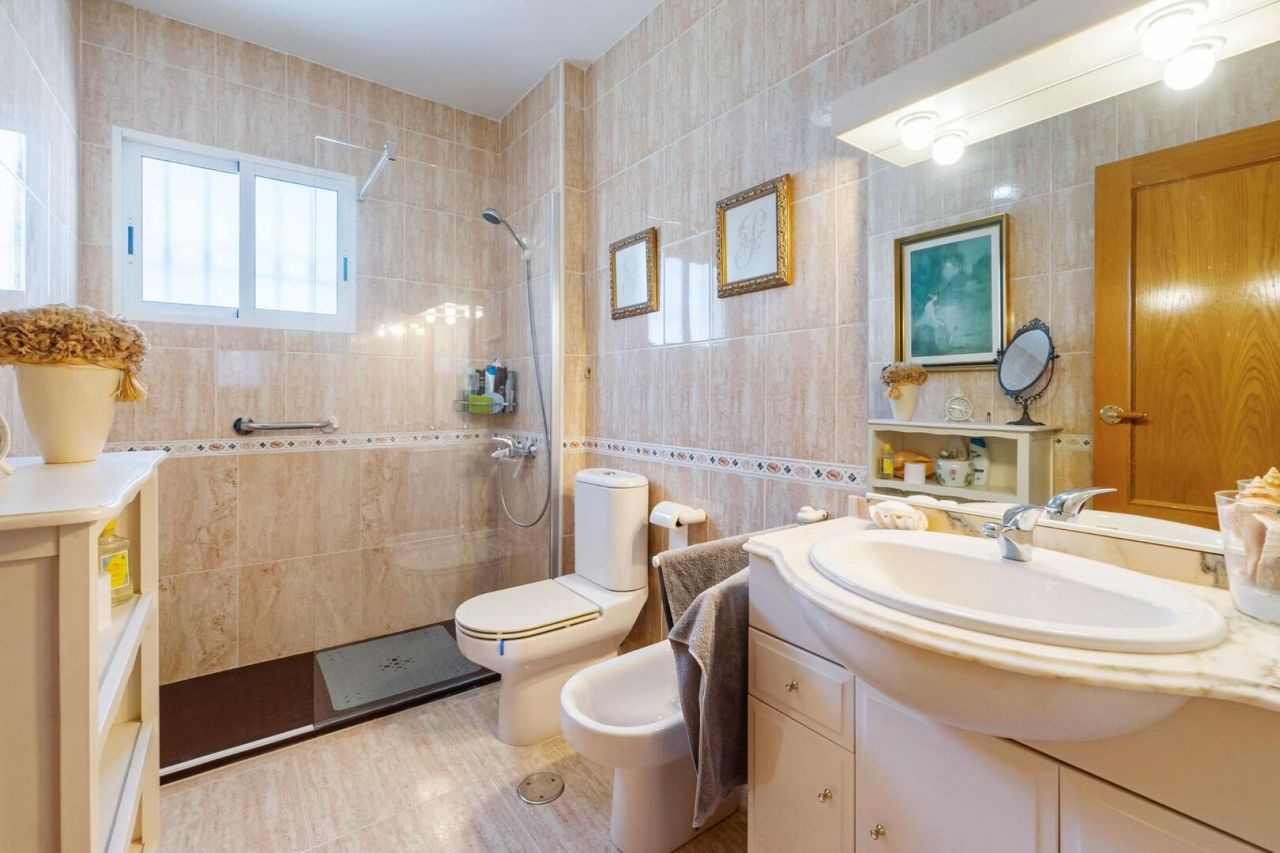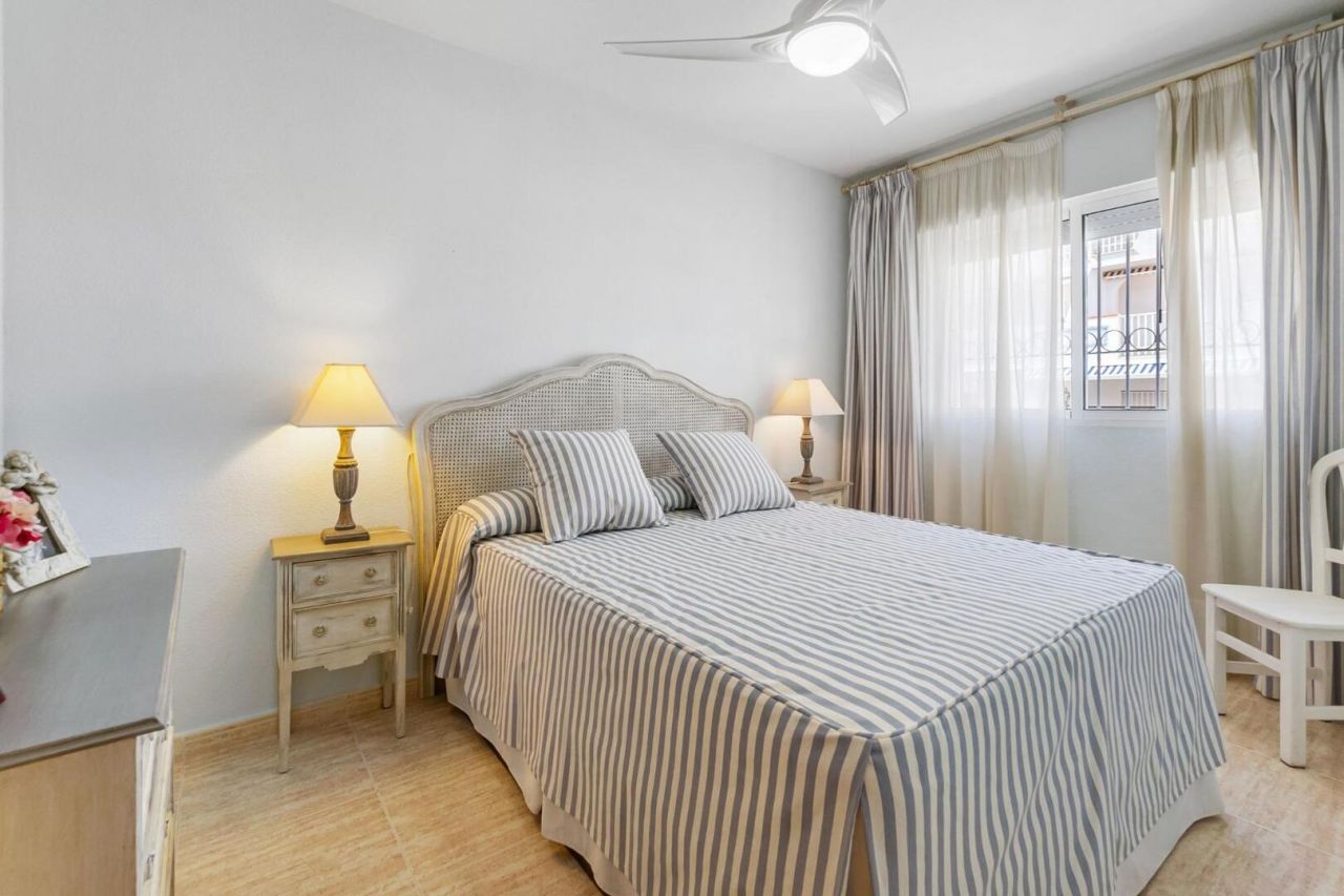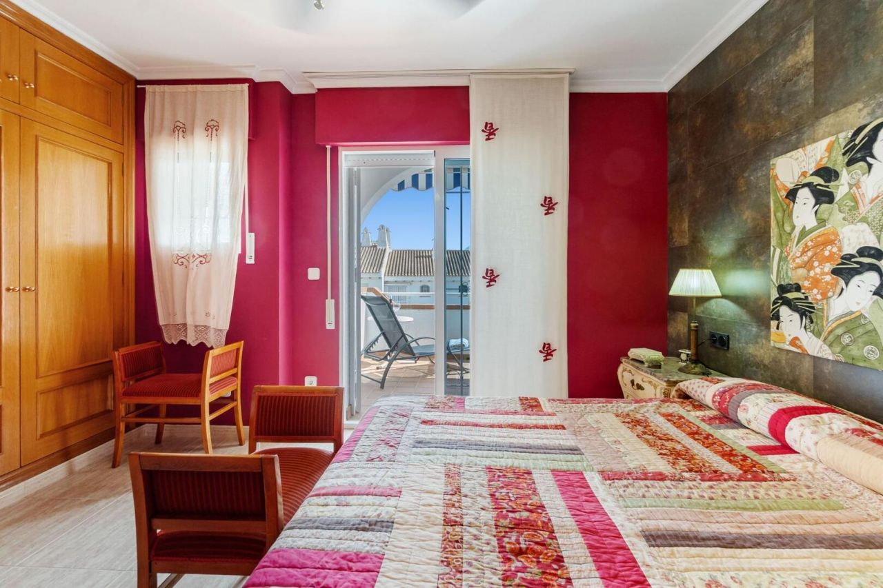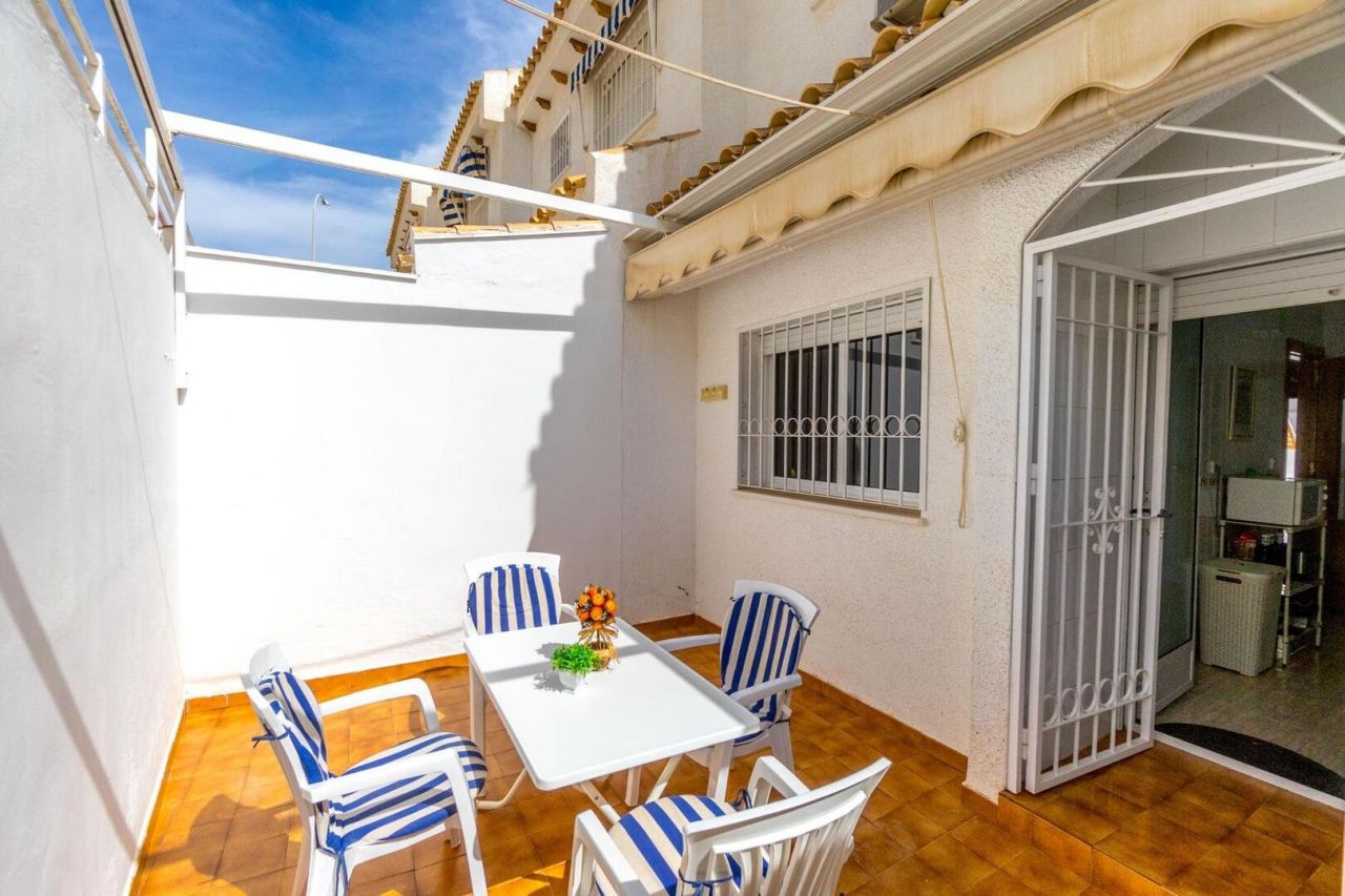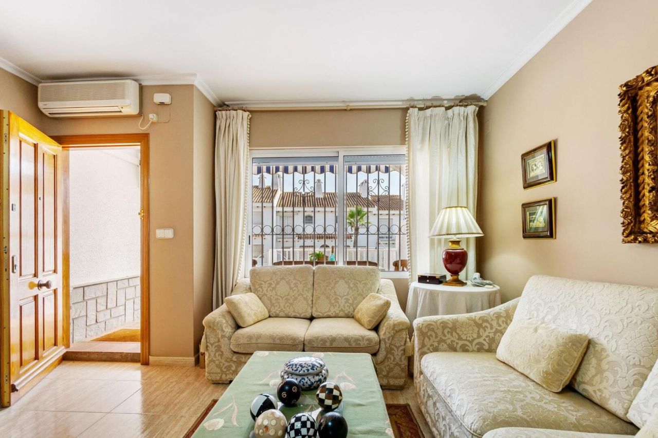 Duplex ve středomořském stylu v Aguamarina (Dehesa de Campoamor). Jihovýchodní orientace a pouhých 100 metrů od pláže. Skládá se ze 3 velkých ložnic, 2 kompletních koupelen, verandy, samostatné kuchyně a dvorku dlouhého více než 12 metrů. Hlavní ložnice s přímým vstupem na terasu. Přístup z domu na 26m2 uzavřené soukromé parkoviště. Klimatizace a krb. Rezidenční s velkými zelenými plochami a bazény. Přímý přístup na pláž a promenádu. Jen 100 metrů od supermarketu, nákupního centra atd.