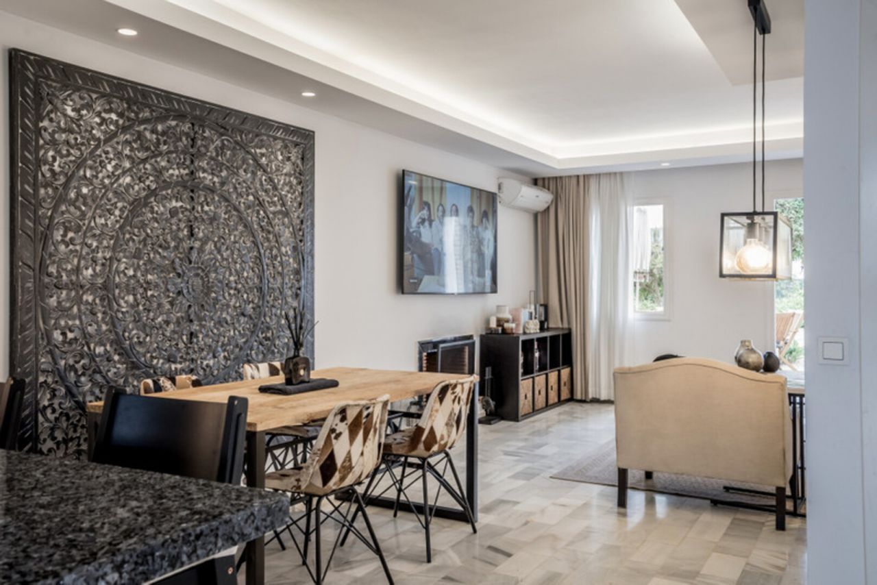 Představte si sami sebe v úžasném mezonetovém mezonetovém bytě v Nueva Andalucia, Marbella. Tento elegantní dům nabízí soukromí a pohodlí, připomínající městský dům. V přízemí je otevřená kuchyně a útulný obývací pokoj, který se otevírá na terasu s výhledem do zelené zahrady. V patře jsou tři okouzlující ložnice, z nichž hlavní má vlastní koupelnu. Tento kompletně zrekonstruovaný duplex vyzařuje modernost a živost. Obyvatelé si mohou užívat slunečné dny u bazénu a upravených zahrad. Více než jen byt, zde se elegance snoubí s pohodlím v malebné Nueva Andalucia.