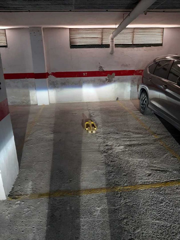 Parking space for sale in the semi-basement with access via a street-level ramp. It has an approximate area of 14.19 square meters (approximately 2.78m x 5.15m). Additionally, a storage room is for sale in the same semi-basement with an approximate area of 6.5 square meters (2.45m x 2.49m). Annual property tax (IBI) for the parking space: €26.74. Annual property tax (IBI) for the storage room: €12.75.