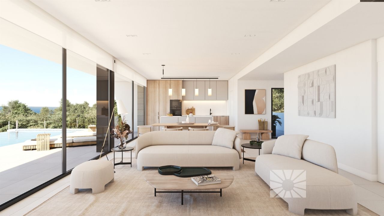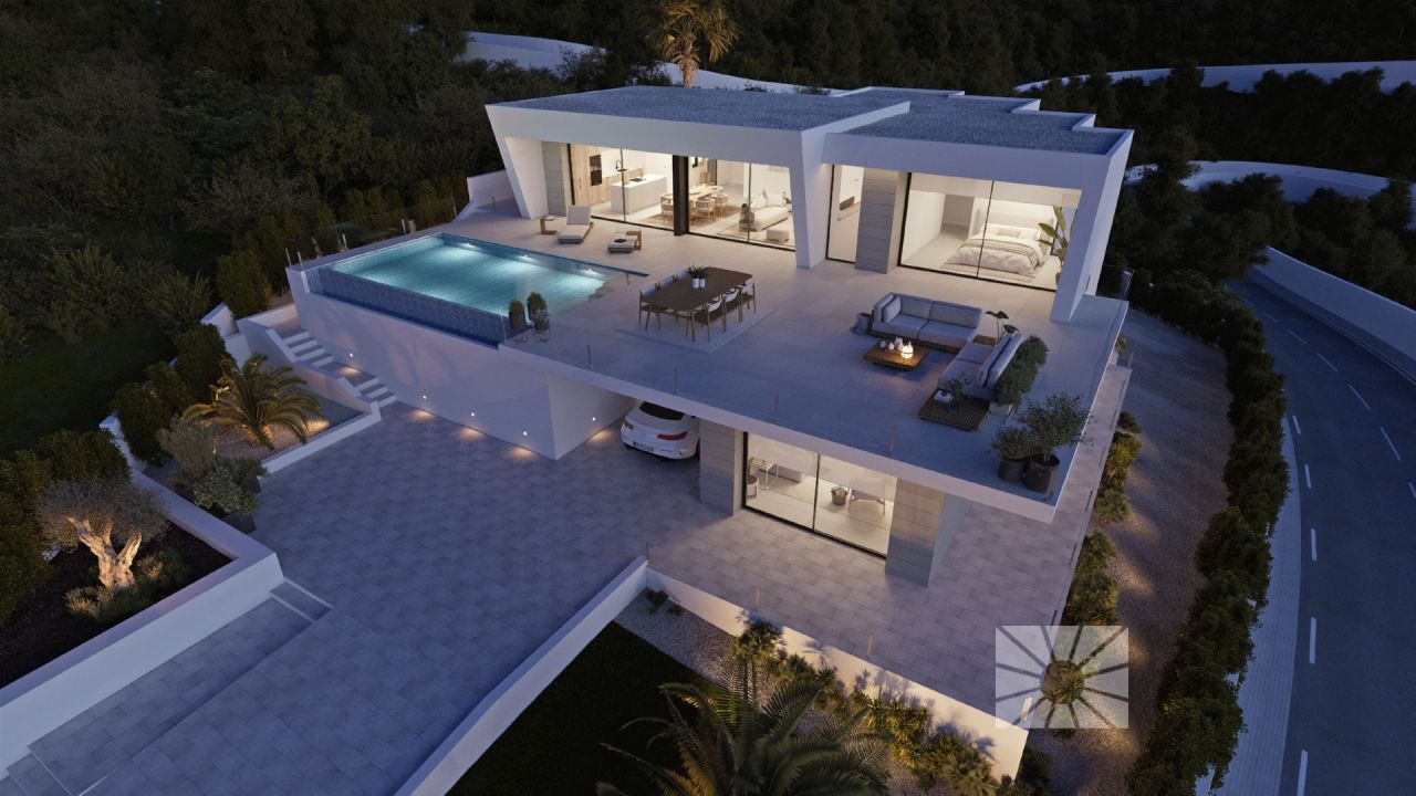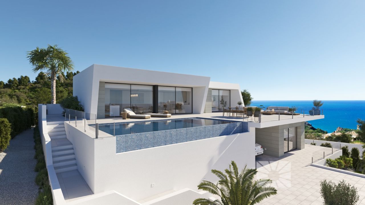 Bright two-storey designer villa, located in a quiet residential area with magnificent sea views, in Lirios Design- Residential Resort Cumbre del Sol in Benitachell. Villa Aral has a layout that makes the most of the hours of sunshine throughout the year, filling it with light. Access to the property is through a porch directly connected to the parking area. The villa has 3 bedrooms and 4 bathrooms, the master bedroom has a large en-suite bathroom with a large window with sea views and access to the large terrace. The other two double bedrooms, have built-in closets and share a bathroom. Both the living-dining room and the kitchen open onto the spectacular summer terrace through large windows that merge indoors and outdoors, allowing you to enjoy the magnificent scenery at any time of the year. The terrace and the Mediterranean garden are organized around a designer infinity pool that merges with the blue sea. On the first floor there is a basement that allows the property to be expanded, either by increasing the number of bedrooms or creating a guest apartment, whichever the new owner prefers.