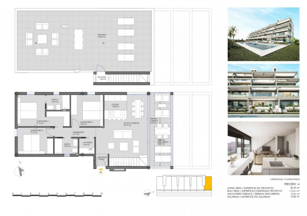 NOVÝ REZIDENČNÍ KOMPLEX V MAR DE CRISTAL Nový moderní rezidenční komplex apartmánů a penthousů nacházející se v těsné blízkosti promenády a dlouhých krásných písečných pláží Mar de Cristal. Vybrat si můžete z přízemních apartmánů s vlastní zahradou, apartmánů ve středním patře s terasou a penthousů s vlastním soláriem. Apartmány mají 2 nebo 3 ložnice a 2 koupelny. Byt má moderní design a nabízí otevřený obývací prostor spojující kuchyň, jídelnu a obývací část do velkého prostoru se vstupem na terasu. Hlavní ložnice má vlastní koupelnu. Postaveno s vysoce kvalitními povrchy, vestavěnými skříněmi, předinstalovanou klimatizací, komorou a podzemním parkováním. Veškeré předměty denní potřeby, jako jsou supermarkety, bary a restaurace, jsou dostupné po celý rok a nacházejí se v blízkosti komplexu. Mar de Cristal má krásné písečné pláže, tenisové centrum, přístav, supermarkety, bary a restaurace. Národní park Calblanque, kde najdete nedotčené dlouhé bílé písečné pláže, stejně jako slavný klub La Manga a živé město Los Belones, jsou 5 minut jízdy od vesnice. Letiště Murcia je vzdálené 25 minut jízdy a Alicante 1 hodinu jízdy. Navštívit můžete také historická města Cartagena a Murcia.