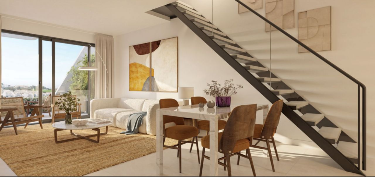 Tento krásný penthouse se 2 ložnicemi se nachází v krásné nové zástavbě v Mijas, poblíž Fuengiroly. Jeho privilegovaná poloha a veřejné prostory s bazénem a posilovnou jsou obklopeny zahradami, takže si můžete užívat nádherné klima a životní styl Costa del Sol. Design ztělesňuje sofistikovaný styl brazilských letovisek, ale je zasazen do moderního rezidenčního komplexu s čistými liniemi a jedinečným designem. Tato oblast Mijas se stala velmi oblíbenou se silným středomořským charakterem, plážemi nádherné krásy a rozmanitou gastronomií. Blízkost měst Fuengirola a Marbella vám navíc umožňuje využívat řadu volnočasových a kulturních aktivit, přičemž mezinárodní letiště Malaga je vzdálené pouhých 30 minut. Prestižní golfový klub Calanova se zelenými kopci leží na úpatí komplexu. Jeho design splňuje profesionální standardy. Ceny mezonetových a střešních bytů od 86,41 metrů čtverečních se pohybují od 395 000 do 574 000 eur. V ceně je vlastní parkovací stání a komora v podzemní garáži s výtahem.