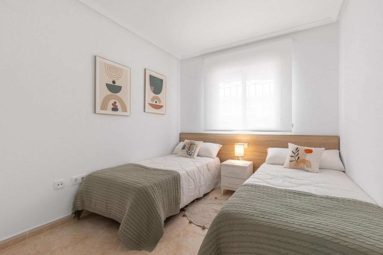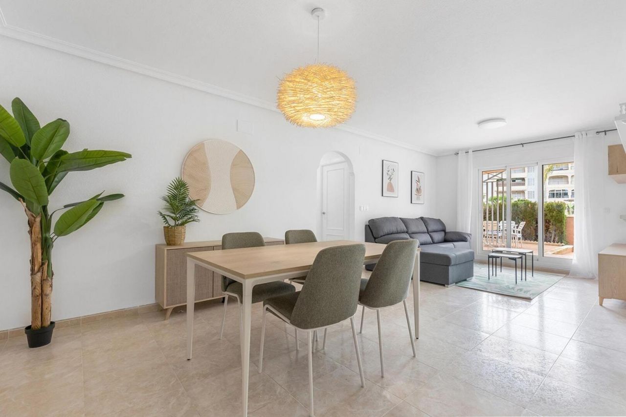 Představujeme vám tuto nemovitost v přízemí soukromého komplexu s dostatkem soukromí. Nabízí 2 prostorné ložnice se 2 koupelnami a velkou, plně vybavenou kuchyň s technickou místností.~~Nemovitost je plně vybavena novým nábytkem a dekoracemi!~~A to vše s velkým pozemkem, kde si můžete užít rodinné grilování, hrát si s dětmi nebo vnoučaty nebo relaxovat s knihou.~~Jedním z vrcholů této nemovitosti je její soukromá komunita, která nabízí více než 4 000 m² zahrad, tenisové a basketbalové kurty, dětský koutek, okrasné jezírka a krásnou lagunu s fontánou a vodopádem. Komunita má také velký bazén obklopený přírodní trávou a stromy, který vytváří relaxační atmosféru prázdnin.~~Tato nemovitost se nachází pouhých 5 minut od slavného sobotního trhu a 10 minut chůze od nákupního centra Zenia Boulevard a je vynikající investiční příležitostí s vysokým potenciálem pronájmu po celý rok: až 900 EUR měsíčně pro dlouhodobé pronájmy nebo 1 000 EUR týdně pro rekreační pronájmy.~~Nenechte si ujít tuto příležitost! Kontaktujte nás a zjistěte, jak by se tato vzrušující nemovitost mohla stát vaším novým domovem.~~Přemýšlíte o prodeji své nemovitosti a koupi tohoto vysněného bytu? Naše agentura vám nabízí bezplatné ocenění s více než 20 lety zkušeností v oboru a nejaktuálnějšími údaji o prodeji. Pomůžeme vám dosáhnout rychlého a výhodného prodeje, abyste si mohli začít užívat života u moře, po kterém jste vždy toužili. Kontaktujte nás nyní a udělejte první krok k vašemu novému životu na Costa Blance!~~Inzerát může obsahovat chyby nebo být neúplný; nejedná se o závaznou nabídku.