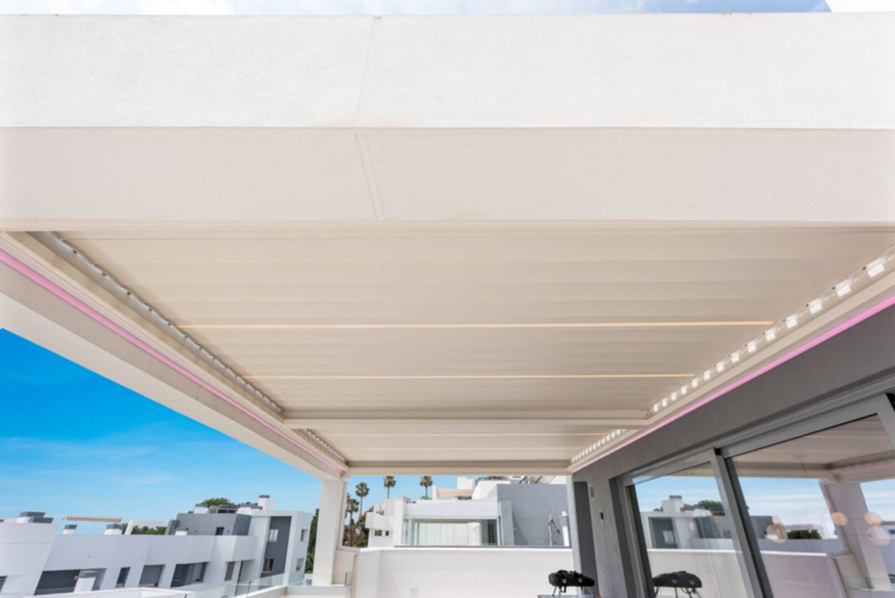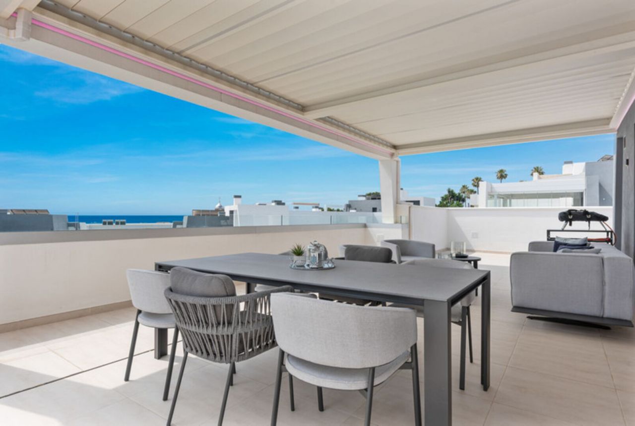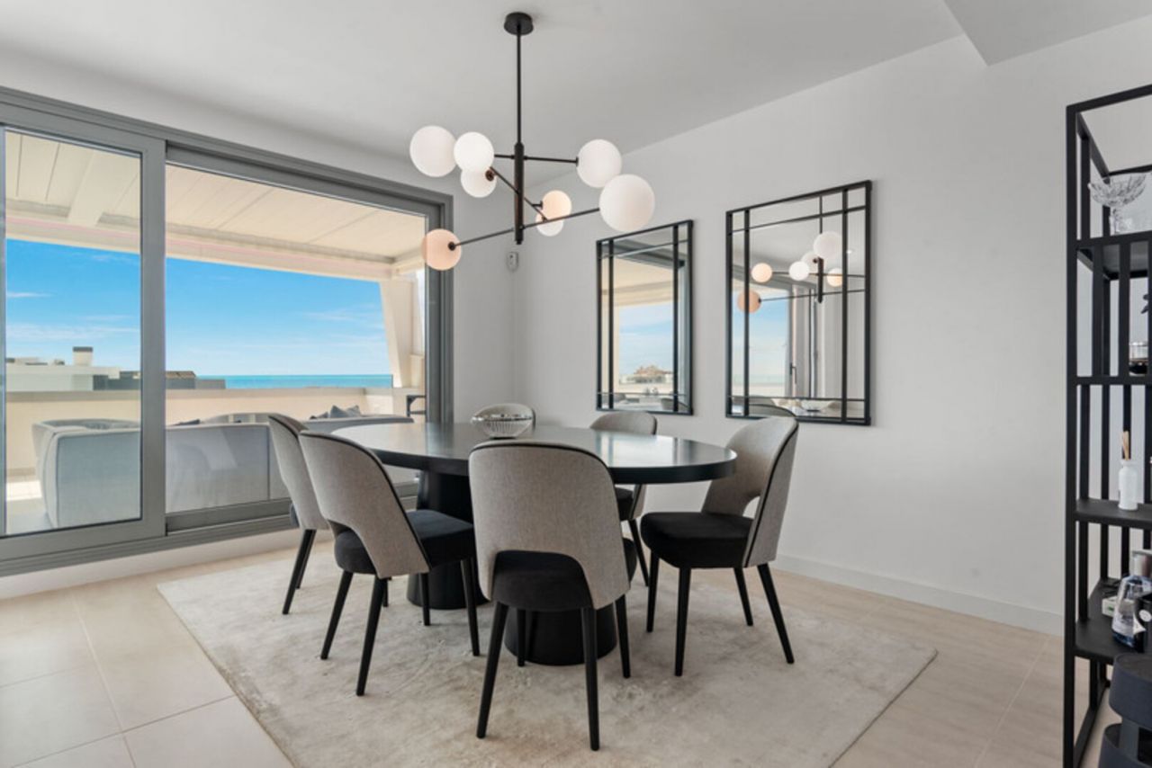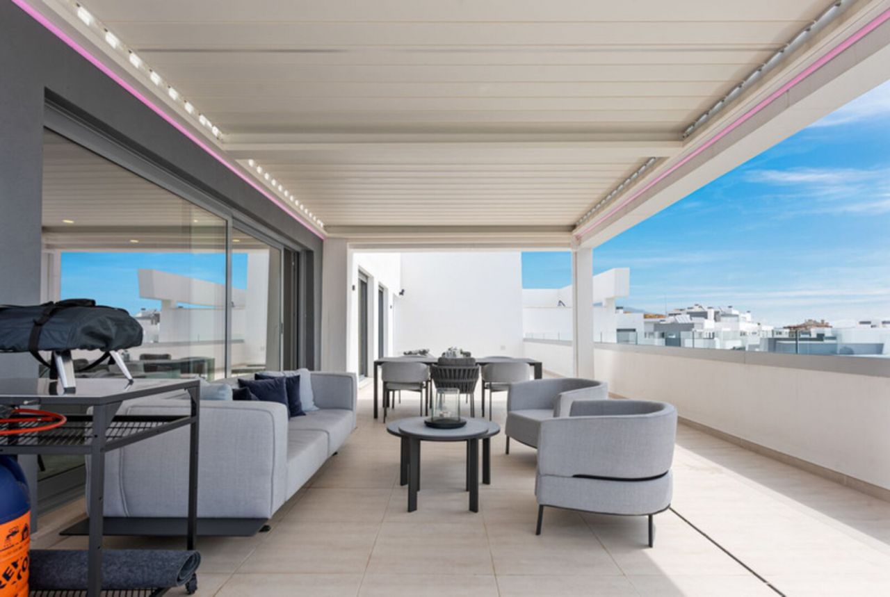 Dům má 3 ložnice a 2 koupelny, plus světlý a vzdušný otevřený prostor obývacího, jídelního a kuchyňského koutu s vysokými stropy a moderními zakázkovými skříněmi. Vyjděte z obývacího pokoje na velmi prostornou 134 m2 jižně orientovanou terasu s úžasným výhledem na Středozemní moře. Interiér: Modernizovaná kuchyně je vybavena veškerými moderními vymoženostmi včetně digestoře, mrazáku, skříněk s bílou technikou, sklokeramické desky, lednice, trouby, dřezu a myčky (exkluzivní spotřebiče Miele/Bosch). V koupelnách jsou sprchové kouty s vysoce kvalitním povrchem. Mezi další exkluzivní prvky tohoto penthouse patří vinný sklípek (3zónový vinný sklep Nodor), gril a pec na pizzu pro lahodnou zábavu. Vlastní šatna v hlavní ložnici s vlastní koupelnou a USB/USB c porty v každém pokoji. Terasa o rozloze 134 m2 má po celé ploše LED osvětlení, otevřenou bioklimatickou střechu, venkovní nábytek od Talenti, venkovní sprchu a gril, ideální pro relaxaci a setkávání. Zařízení je působivé, s několika bazény včetně dětského bazénu, posilovny a dobře vybavené posilovny pro cvičení. Budete mít také přístup do společného prostoru s kuchyní, ideální pro klidný pracovní prostor, pořádání narozeninových oslav, večeří nebo poskytování herního koutku pro děti. V současné době ve výstavbě a téměř dokončeno je součástí komplexu velké lázeňské centrum s krytým bazénem, saunou a koupelemi, dále kinosál a zábavní zóna. Tato nemovitost je ideální investiční příležitostí k trvalému či rekreačnímu bydlení i pro zájemce o pronájem nemovitosti. Nábytek je v ceně nemovitosti, vřele doporučuji prohlídku!!!