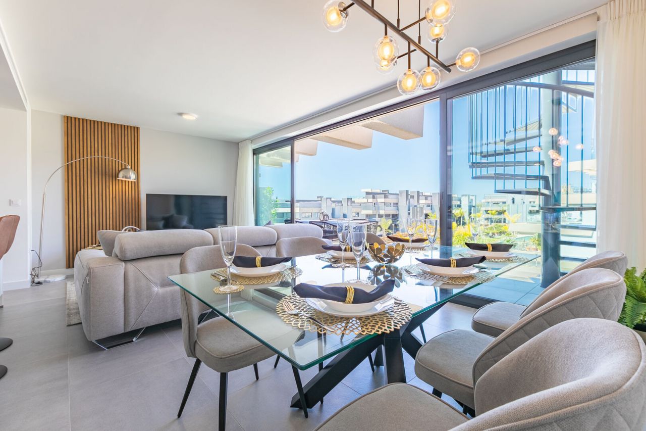 costa-del-solTento elegantní penthouse s výhledem na moře v Esteponě se nachází pouhých 45 minut jízdy od mezinárodního letiště Malaga. Jihozápadně orientovaný hotel se nachází v docházkové vzdálenosti od vyhlášených golfových hřišť, michelinských restaurací, exkluzivních nákupních center a různého vybavení na místě. Světlý a příjemný obytný prostor zahrnuje moderní, plně vybavenou kuchyň, která dodává interiéru jednoduchou současnou eleganci, s jídelním koutem s velkými prosklenými dveřmi prodlužujícími obývací prostor na terasu, doplněnou elegantní markýzou pro venkovní zábavu. Točité schodiště vede do nádherného soukromého solária s výhledem na bazén, moře a hory. Tento penthouse, umístěný v krásné zeleni, má 3 ložnice s vestavěnými skříněmi, 2 koupelny, soukromou garáž (1 parkovací místo), komoru a 24hodinovou bezpečnostní službu. Byt je vybaven klimatizací, dvojskly, video vrátným, elektrickými žaluziemi, Wi-Fi a výtahem. Ohromující moderní komplex navržený jedním z předních španělských architektonických studií zahrnuje také kryté bazény, lázně a fitness centrum. Estepona je oblíbenou celoroční turistickou destinací na pobřeží Costa del Sol se svými krásnými plážemi, vynikajícím přístavem, blízkostí golfových hřišť světové úrovně a fantastickým výběrem restaurací, díky čemuž si získala pověst kulinářského centra. Estepona je snadno dostupná z designových obchodů a rušného nočního života v Marbelle a Puerto Banus a je jen 45 minut od mezinárodního letiště Malaga a Gibraltaru. Ať už hledáte rekreační dům, nemovitost s investičním potenciálem nebo trvalé bydlení, abyste si užili nádherný andaluský život, tento penthouse v Esteponě s výhledem na moře splní všechny vaše požadavky na bydlení.