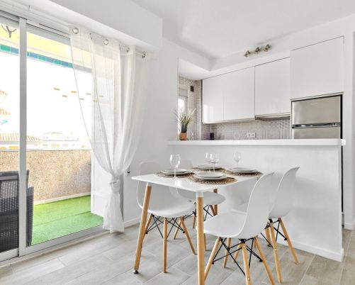 Apartmán o rozloze 102 m2, pouhých 150 m od Playa del Cura a přírodních bazénů, má velký obývací pokoj, 3 ložnice, 2 koupelny, samostatnou kuchyň s galerií, dvě terasy s bočním výhledem na moře, nábytek, klimatizaci a satelitní TV . Všechna okna jsou venkovní. Orientace je jihovýchodní a jihozápadní. Poplatky vlastníků společenství - 400 eur ročně, daně IBI 360 eur. Vzdálenost na letiště Alicante 45 km a vzdálenost na golfová hřiště 15 km.